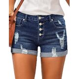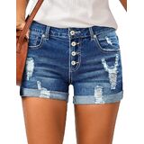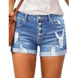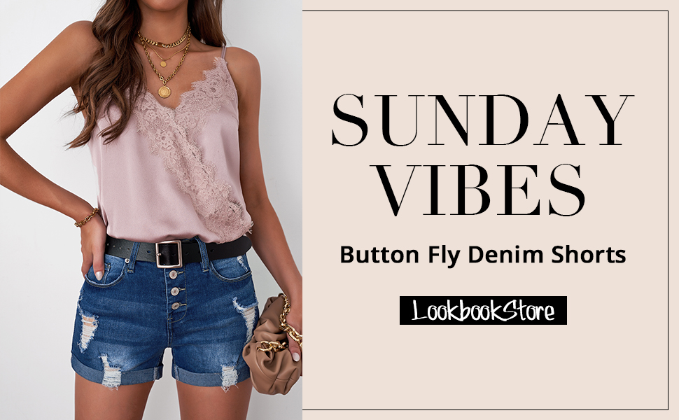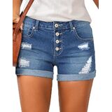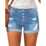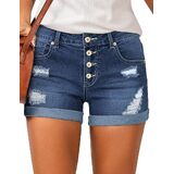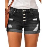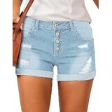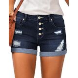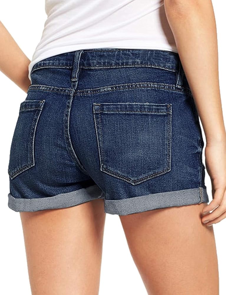 • شورت جينز صيفي كاجوال للنساء يأتي مع زر إغلاق، وخمسة جيوب أساسية وحاشية بأساور مخيطة، مما يضيف بعض الذوق إلى أساسياتك.