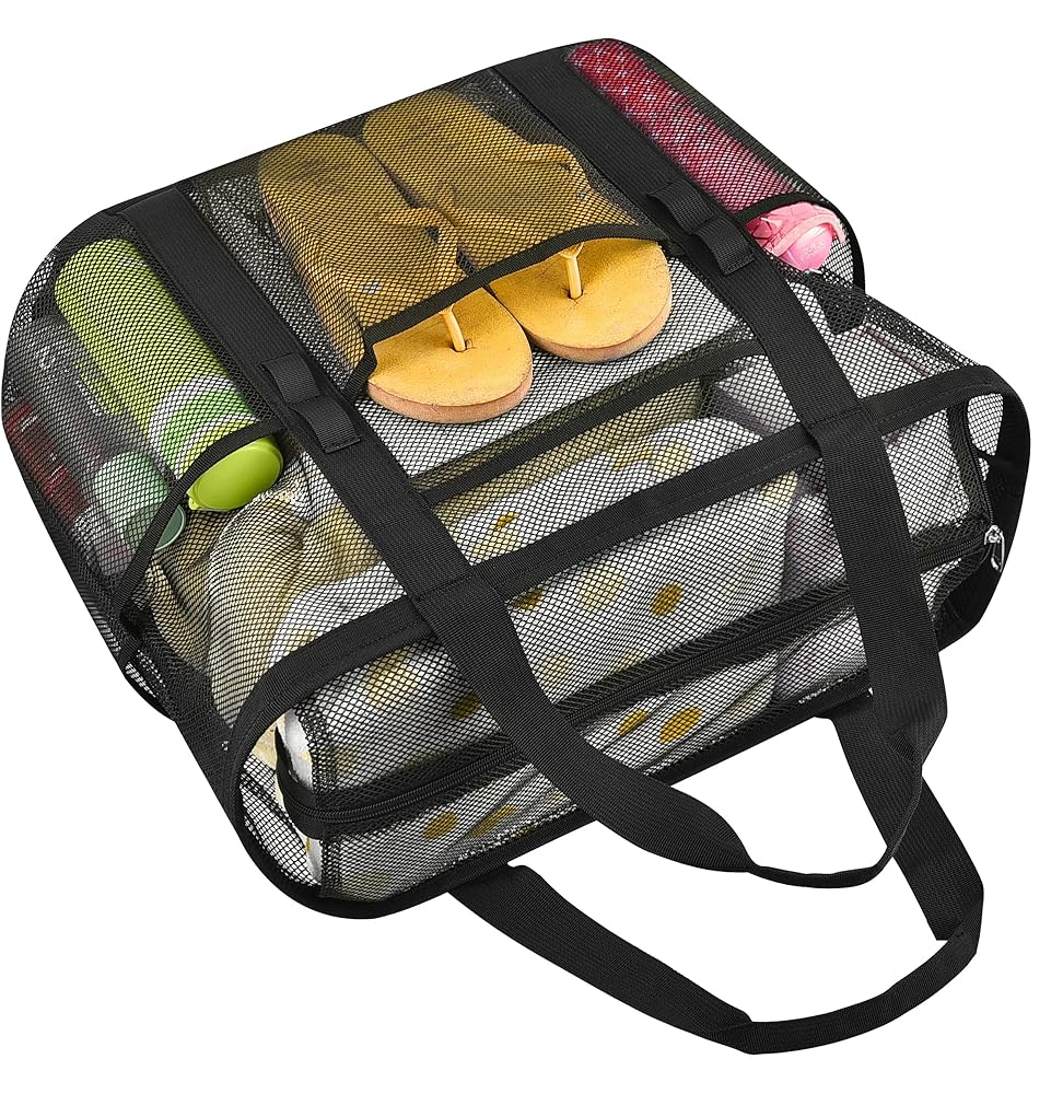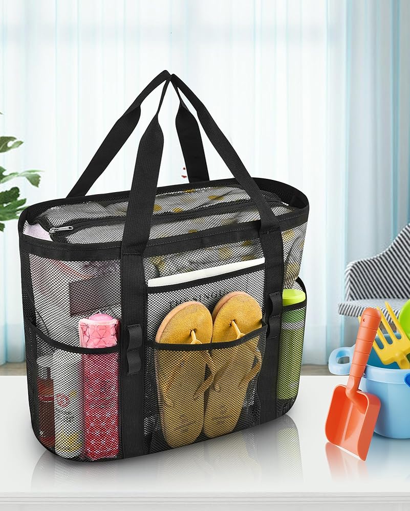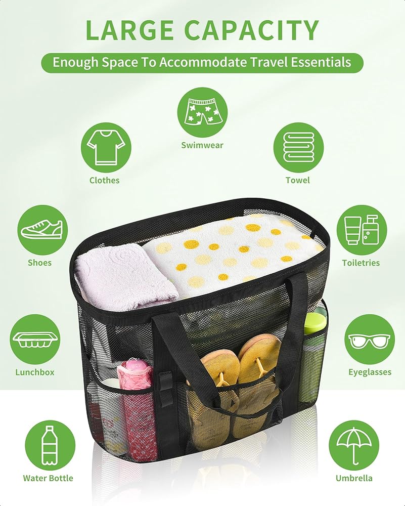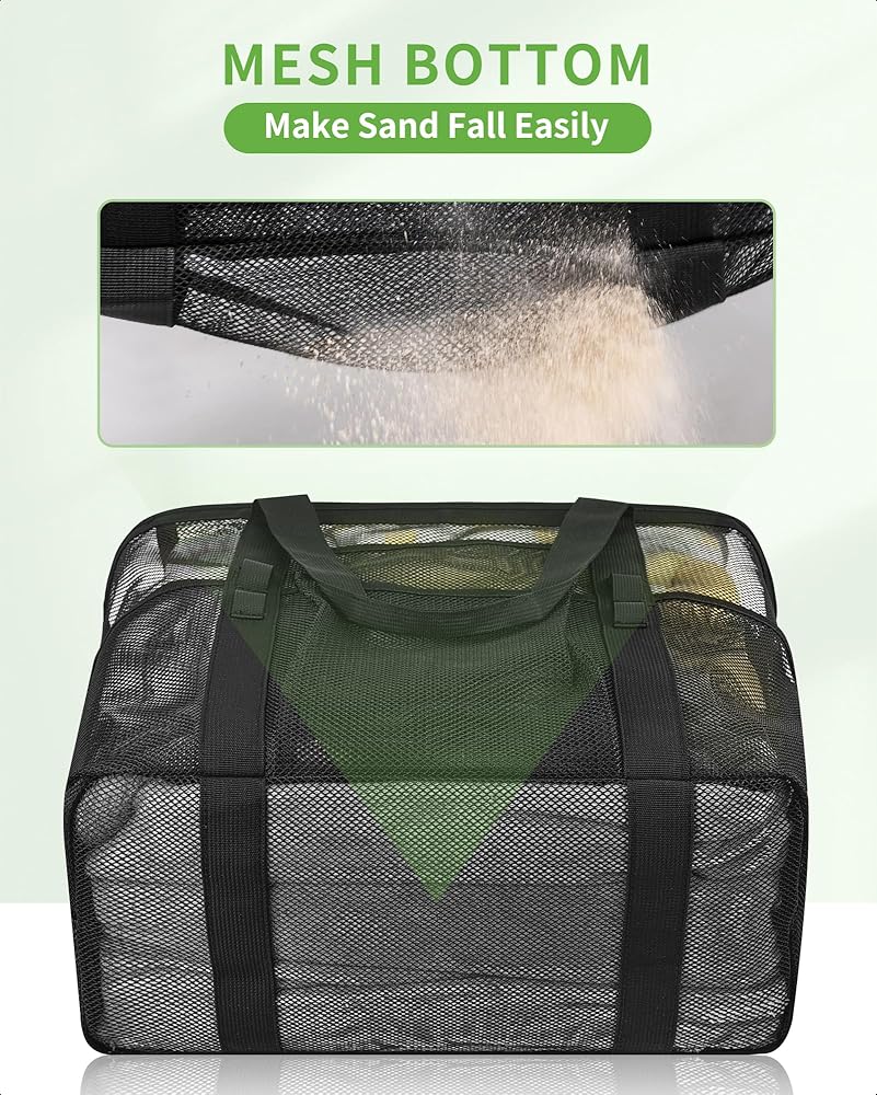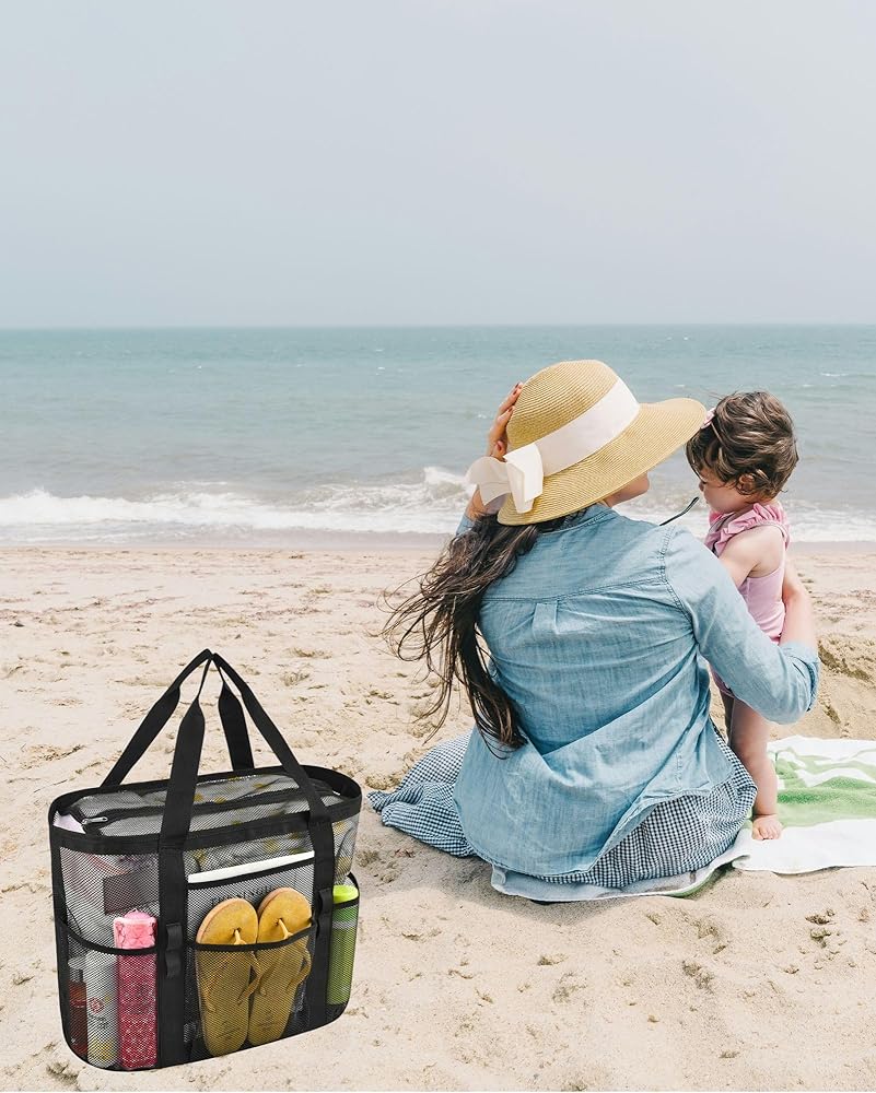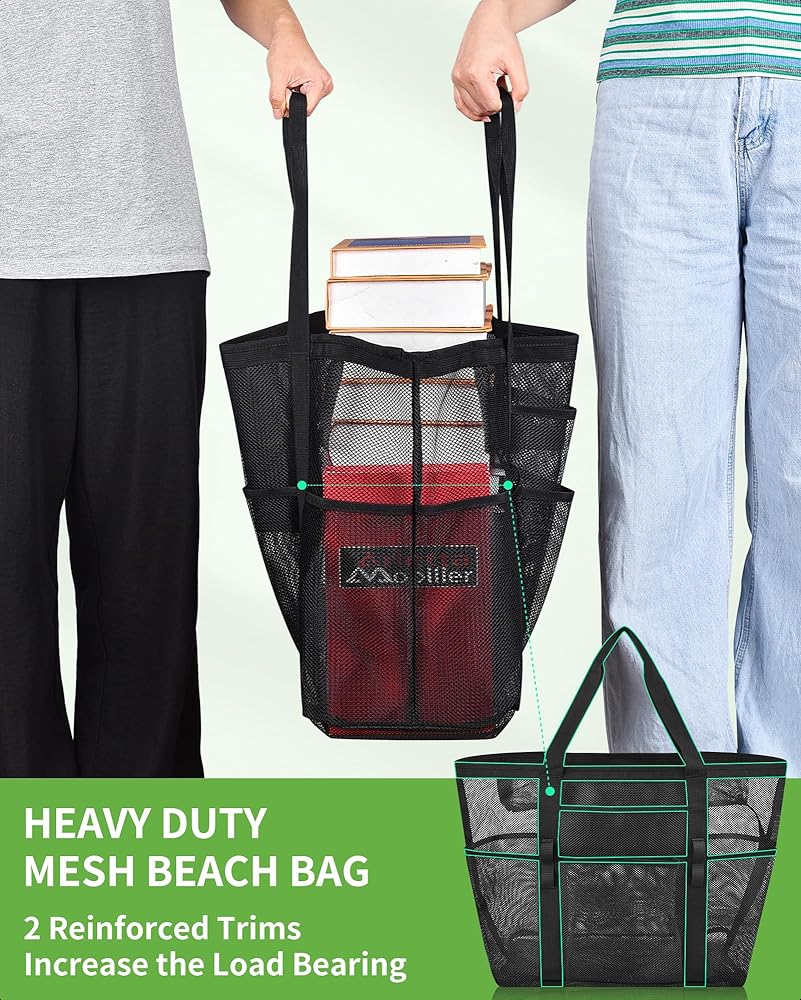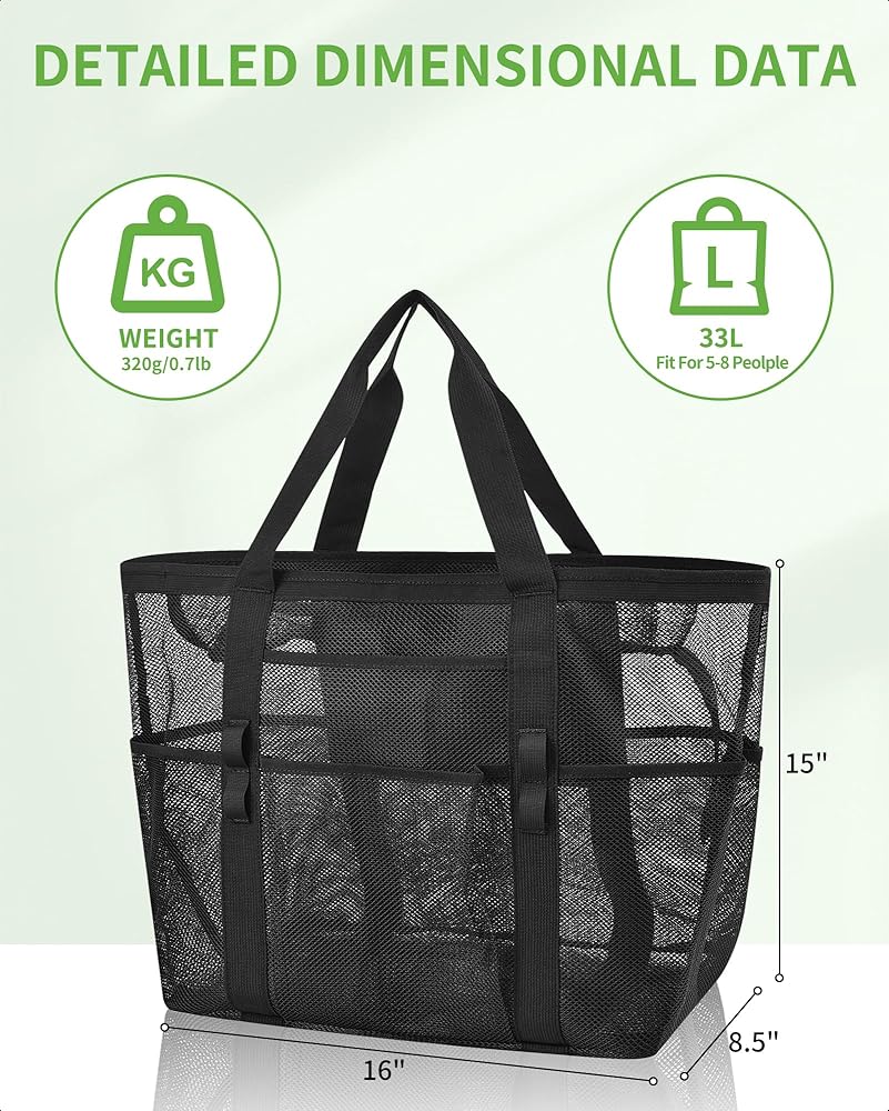 【سعة كبيرة】هذه الحقيبة الشبكية الكبيرة مثالية لحمل جميع مستلزمات الشاطئ الخاصة بك. يمكنها حمل ما يصل إلى 6 مناشف الشاطئ وزجاجات المياه والألعاب والواقي من الشمس والأحذية والنظارات الشمسية والمزيد. إنه رائع للرحلات إلى الشاطئ والأيام العائلية وتسوق البقالة.