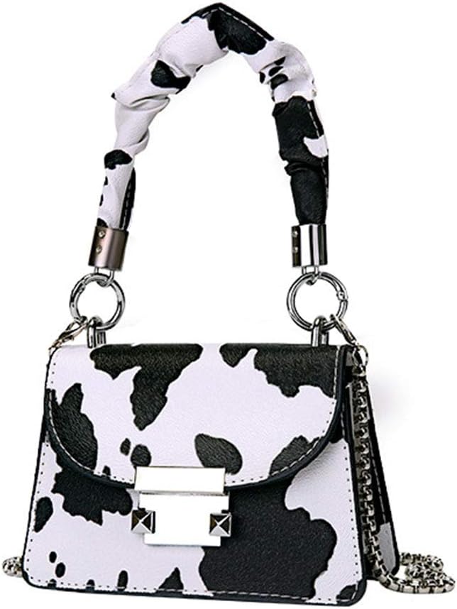 حقيبة يد بطباعة البقرة من السهل أن تتناسب مع فستان السهرة والأحذية الخاصة بك في المناسبات الخاصة.
