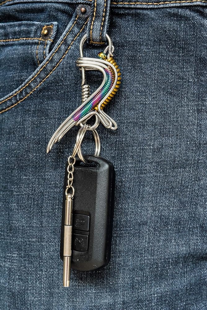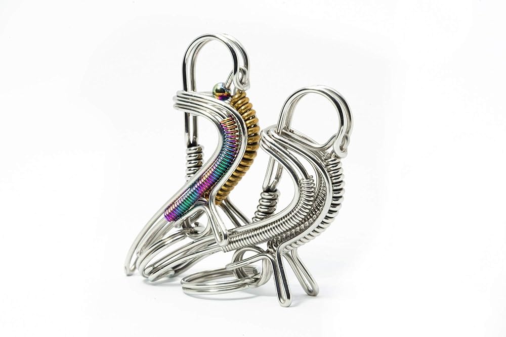 صناعة يدوية 100%: سلسلة مفاتيح على شكل طائر، حلقة مفاتيح، مصنوعة يدويًا من الفولاذ المقاوم للصدأ، تحافظ على المرونة ولا تبهت أبدًا