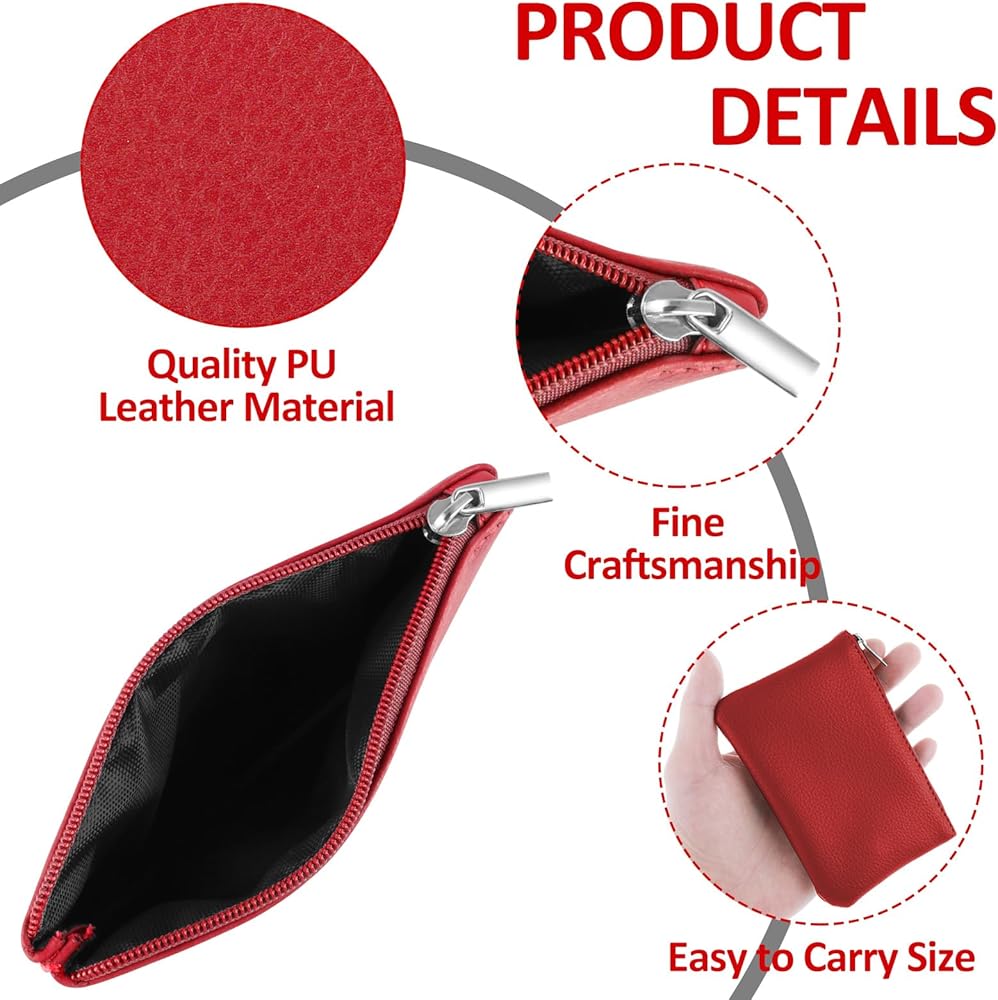 【مادة جلد البولي يوريثان】محافظ العملات المعدنية الصغيرة الخاصة بنا مصنوعة من جلد نباتي ناعم. الغرز المصنوعة يدويًا تجعلها أكثر متانة وأناقة. تصميم بسحاب ناعم، وصناعة متقنة، ومظهر رائع، يمكن استخدامه لفترة طويلة. إغلاق بسحاب سيحمي مقتنياتك الثمينة.