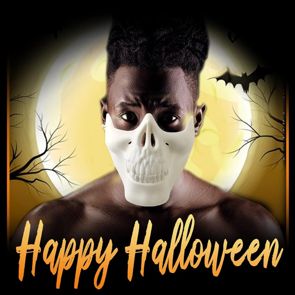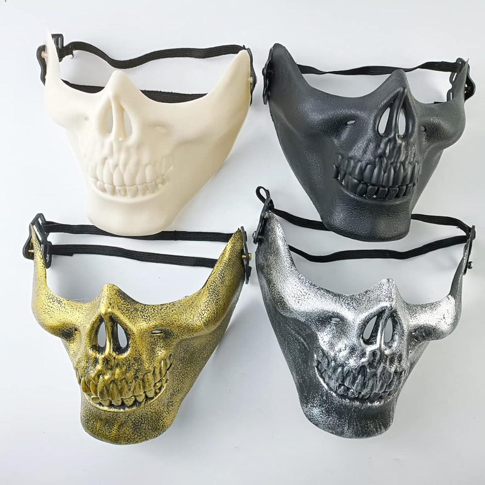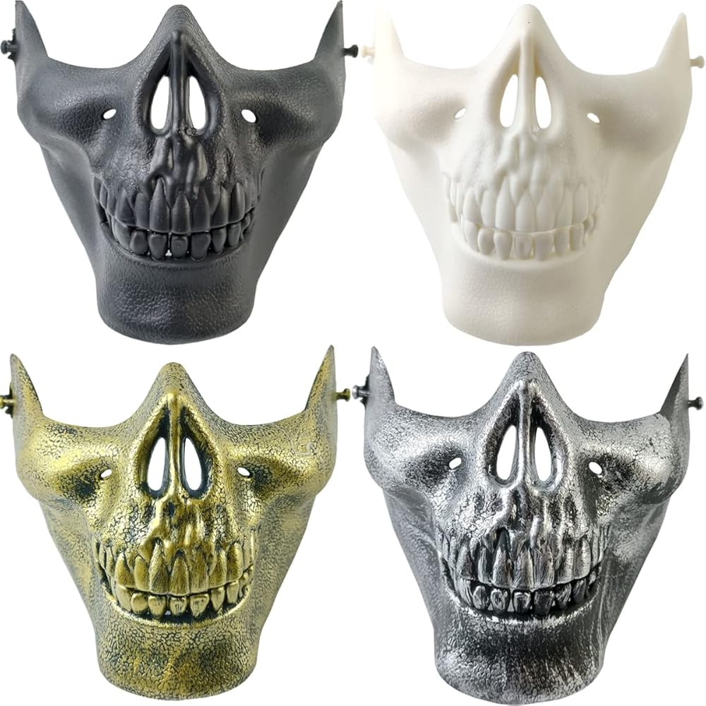 يوهوا قناع هيكل عظمي نصف وجه بتصميم جمجمة للهالوين ولعبة الصيد والحفلات التنكرية والحفلات التنكرية، متعدد الالوان، 4 قطع