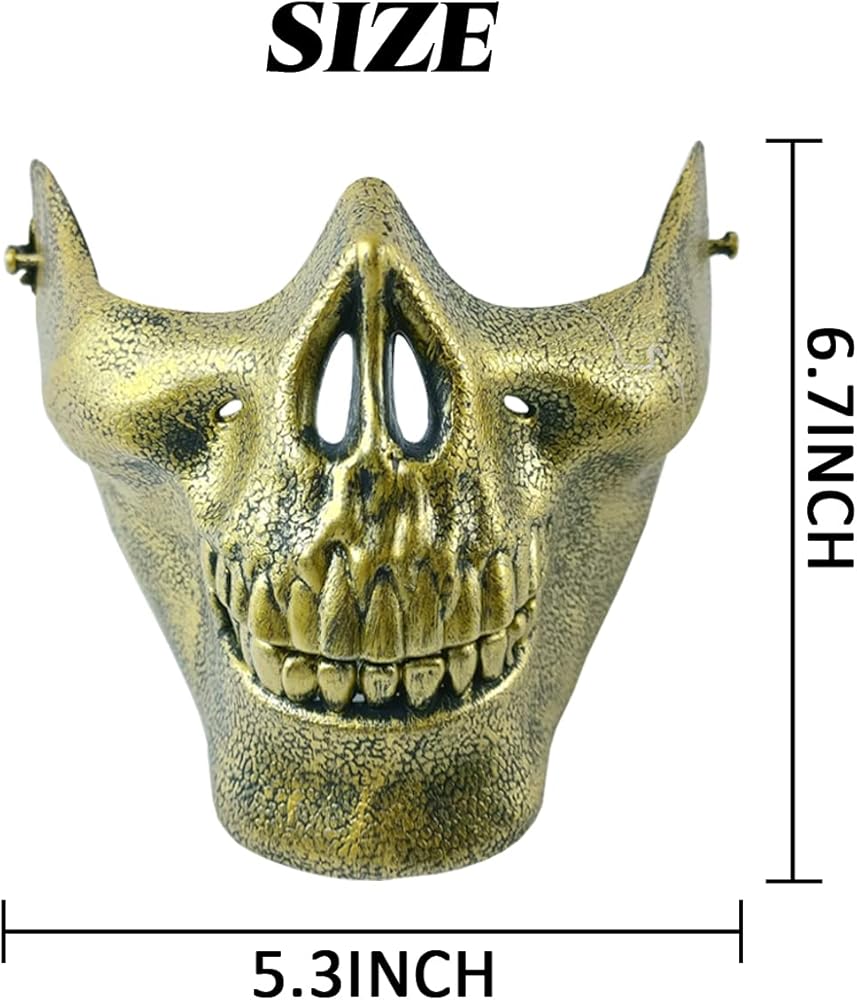 المقاس: تقريبًا 7.07 × 5.11 × 5.5 انش. المادة: بلاستيك متين. أربعة ألوان: أبيض، أسود، أخضر برونزي، رمادي. تلبي احتياجاتك المختلفة. يوجد فتحتان في القناع، يمكنك التنفس بشكل مريح. ويمكن للشريط المطاطي أن يناسب رأسك بشكل مثالي. رائعة لحفلات الهالوين والحفلات التنكرية والكريسماس والحفلات التنكرية.