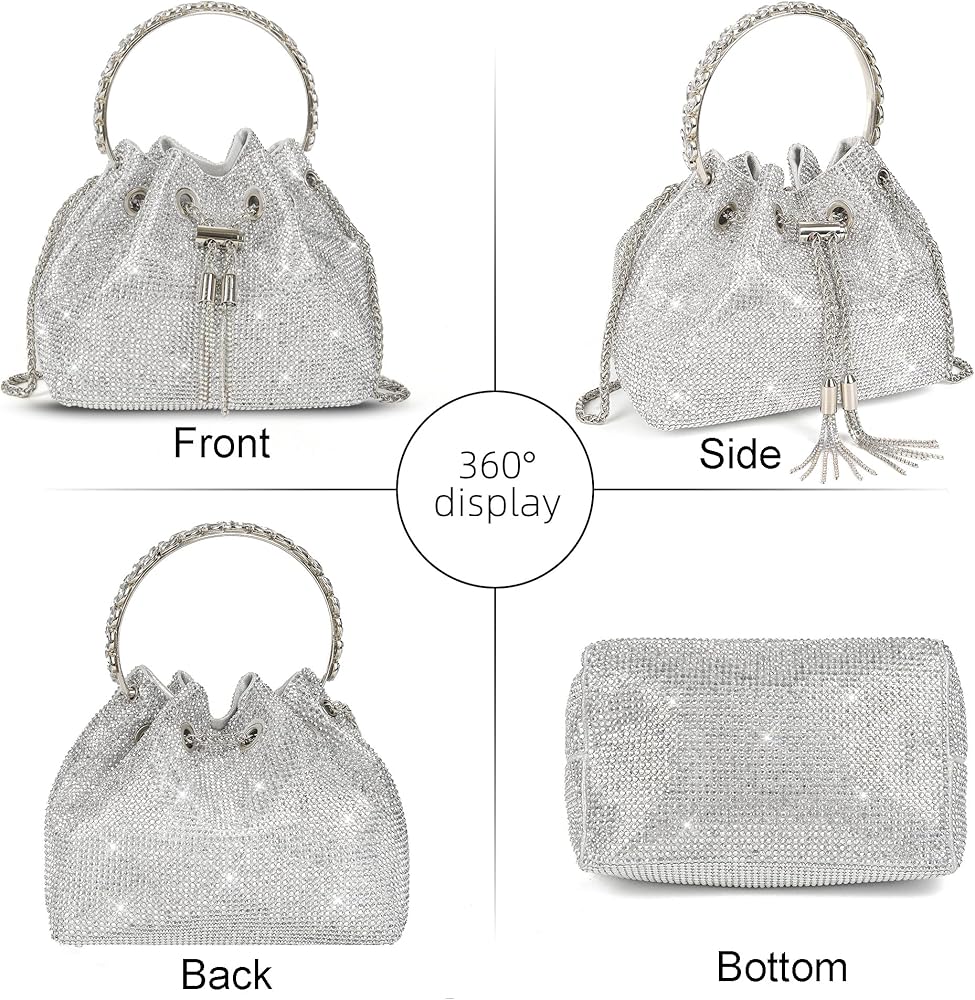 Valleycomfy حجر الراين مخلب محفظة فضية للنساء السيدات بلينغ مساء حقيبة يد كريستال حقيبة كتف سباركلي لحفل زفاف كوكتيل حفلة موسيقية نادي