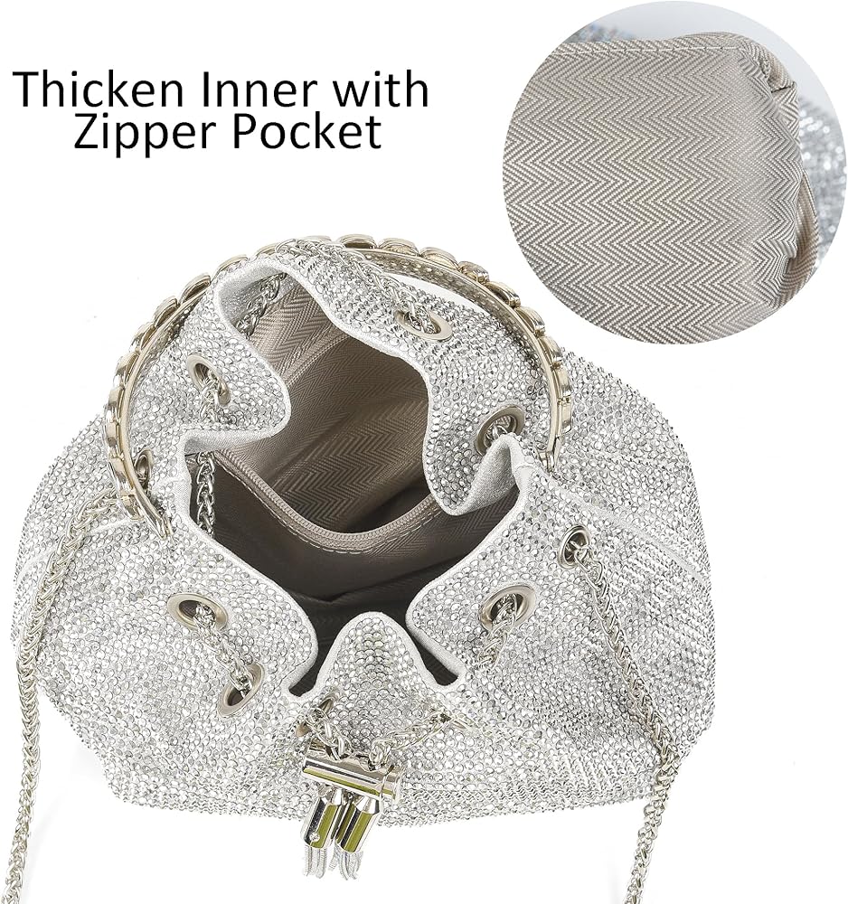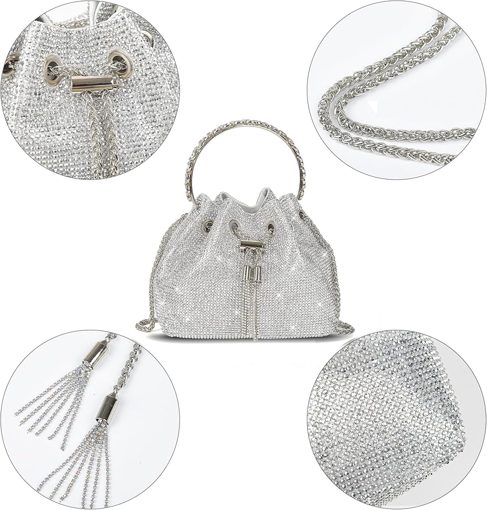 حجر الراين اللامع - سطح حقيبة القماش اللامعة مرصع بالآلاف من الأحجار الكريمة اللامعة بحرفية خاصة، يلمع تحت الضوء، أنثوي وأنيق ويوفر وميضًا رقيقًا وبريقًا.