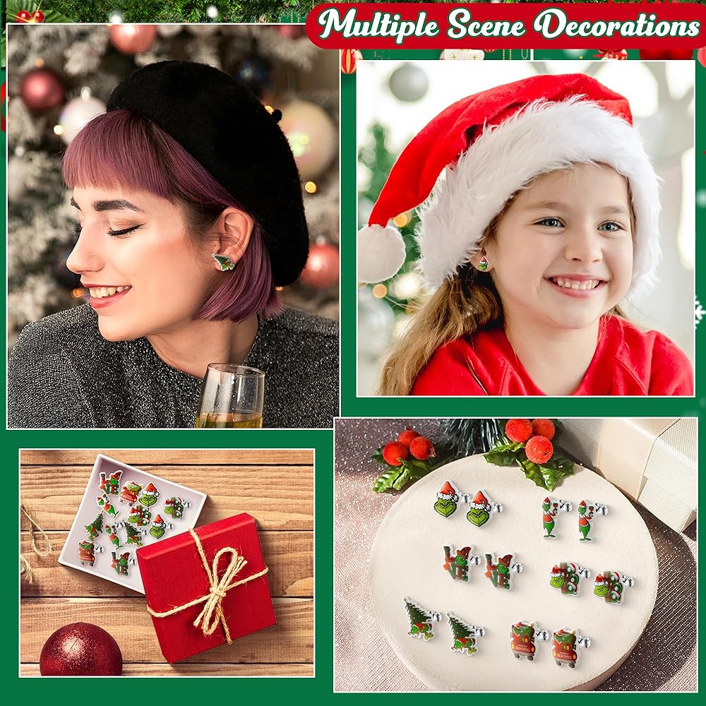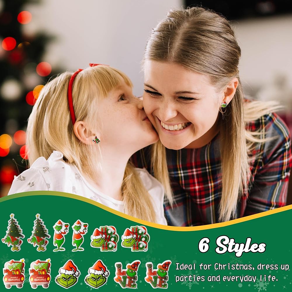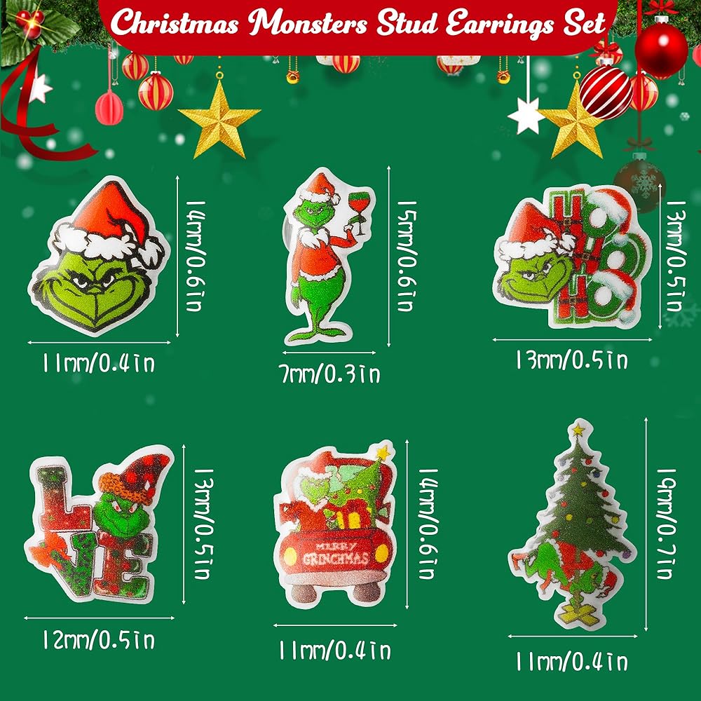 Christmas Stud Earrings - This pack includes 6 pairs green monster earrings studs in different styles. Full of fun, these cartoon earrings are great for various party outfits, such as Christmas, New Year, dress-up parties, cosplay, etc.