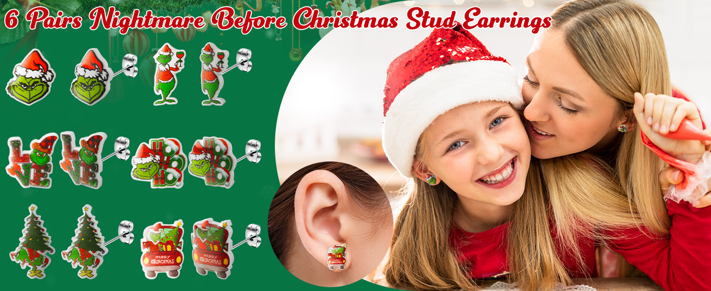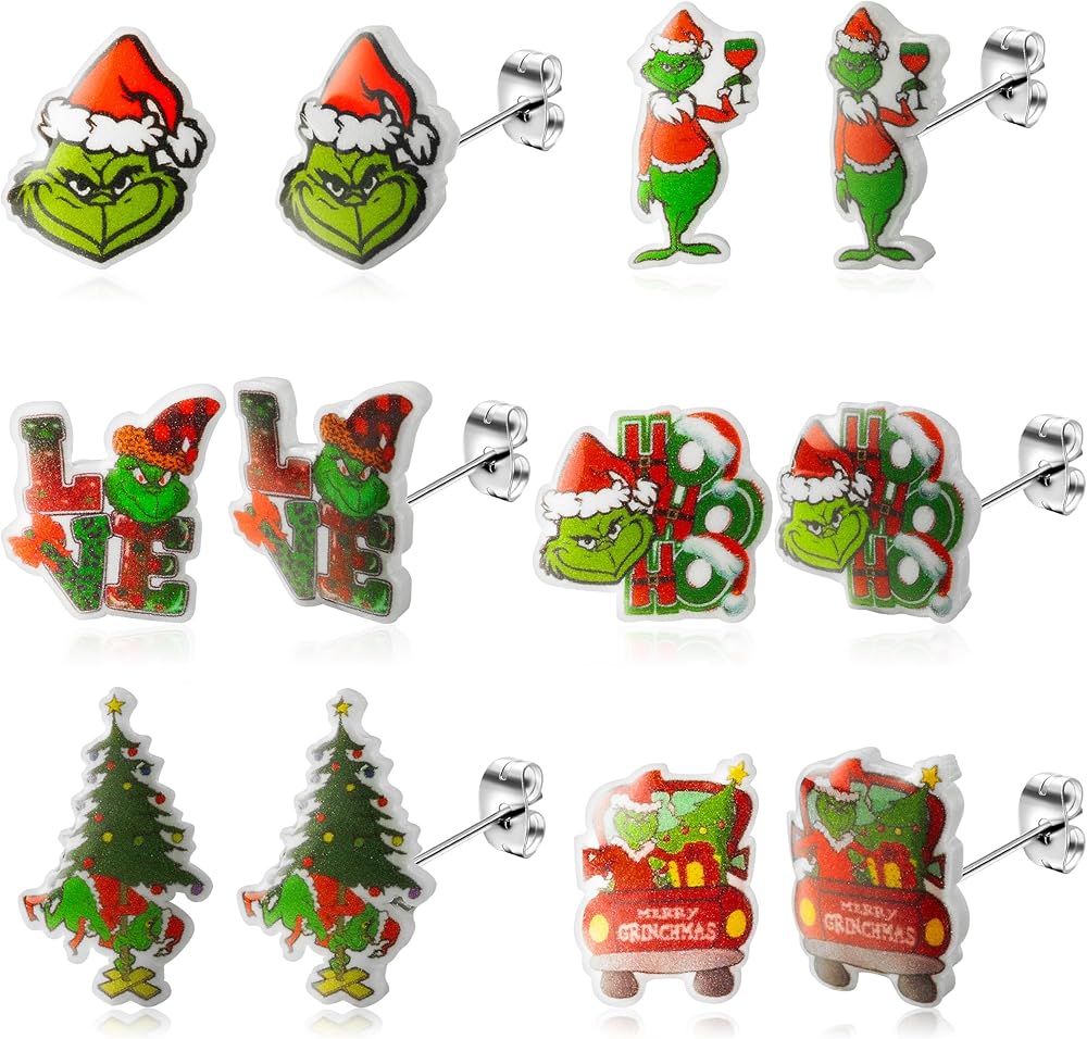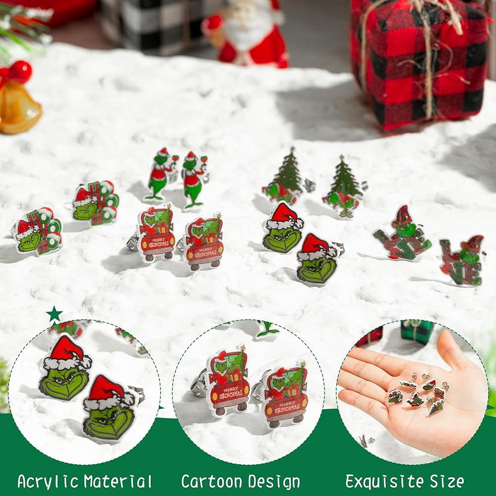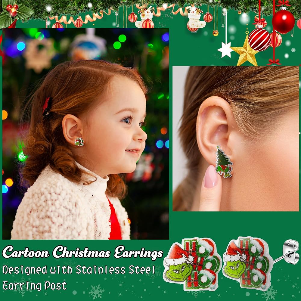 Christmas Stud Earrings - This pack includes 6 pairs green monster earrings studs in different styles. Full of fun, these cartoon earrings are great for various party outfits, such as Christmas, New Year, dress-up parties, cosplay, etc.
