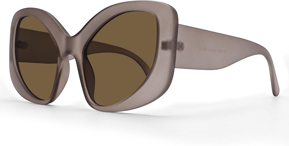 تتميز هذه النظارات الشمسية كبيرة الحجم بأوجه بزاوية وعدسة جريئة منحنية مع أذرع كبيرة وإطار بلوري مدمج ومخصص.