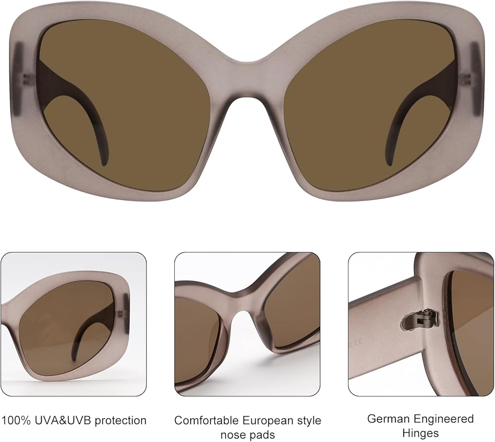 عنصر المصمم: هذه النظارات الشمسية ذات العدسات البيضاوية المائلة كبيرة الحجم، مليئة بالمستقبل. في الحفلات والتسوق والشاطئ وغيرها يجب أن تكوني صاحبة الحضور الأكثر إبهارًا. إنها أيضًا موضة الشارع التي لا غنى عنها