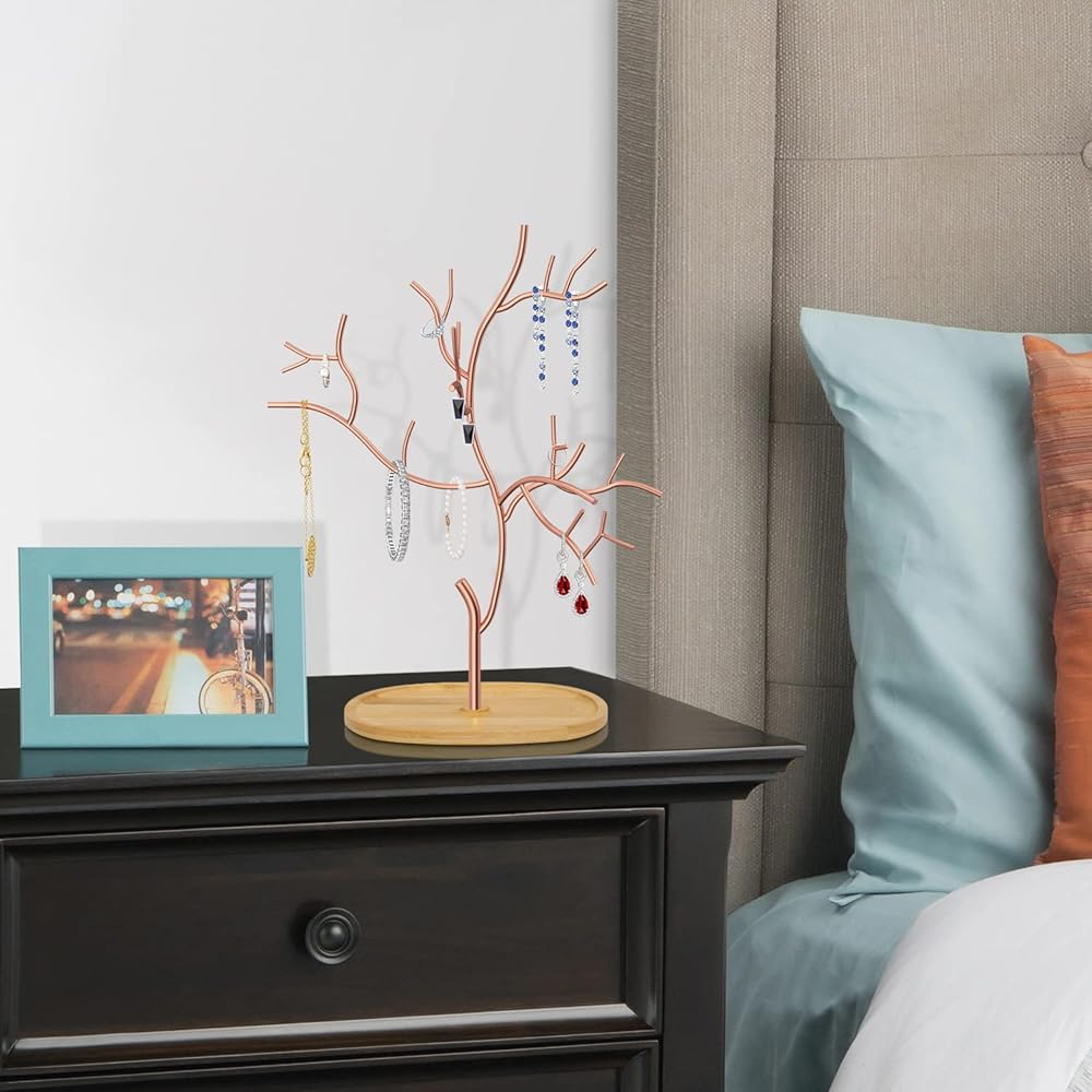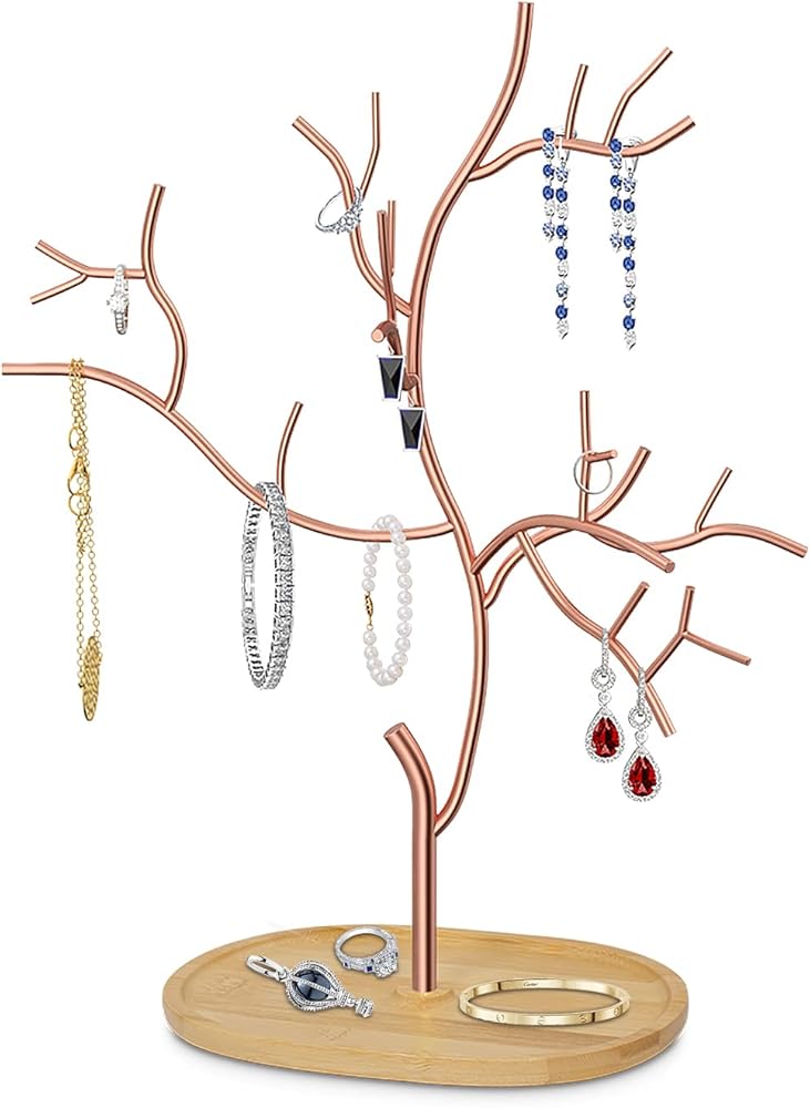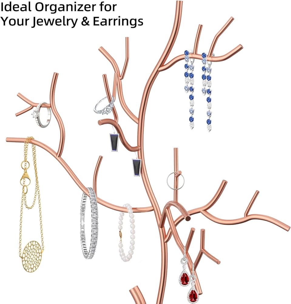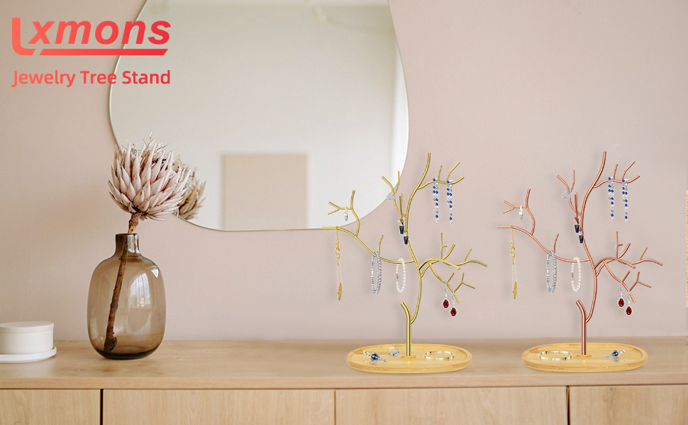 شجرة مجوهرات أنيقة - هل سئمت من طاولة الزينة الباهتة والمملة؟ شجرة حامل المجوهرات المعدنية Lxmons لطيفة وعملية. يمكن لكل فرع على حامل المجوهرات لدينا تخزين المزيد من العناصر بشكل فعال ومنظم، مثل الأقراط والخواتم والقلائد الصغيرة والأساور وإكسسوارات الشعر.