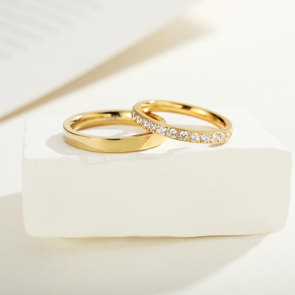 التصميم: مجموعة من قطعتين من الخواتم الذهبية بما في ذلك حلقة رفيعة وخاتم ألماس مقلد أنيق. تصميم فريد ورقيق، يجعلك ساحرًا وأنيقًا.