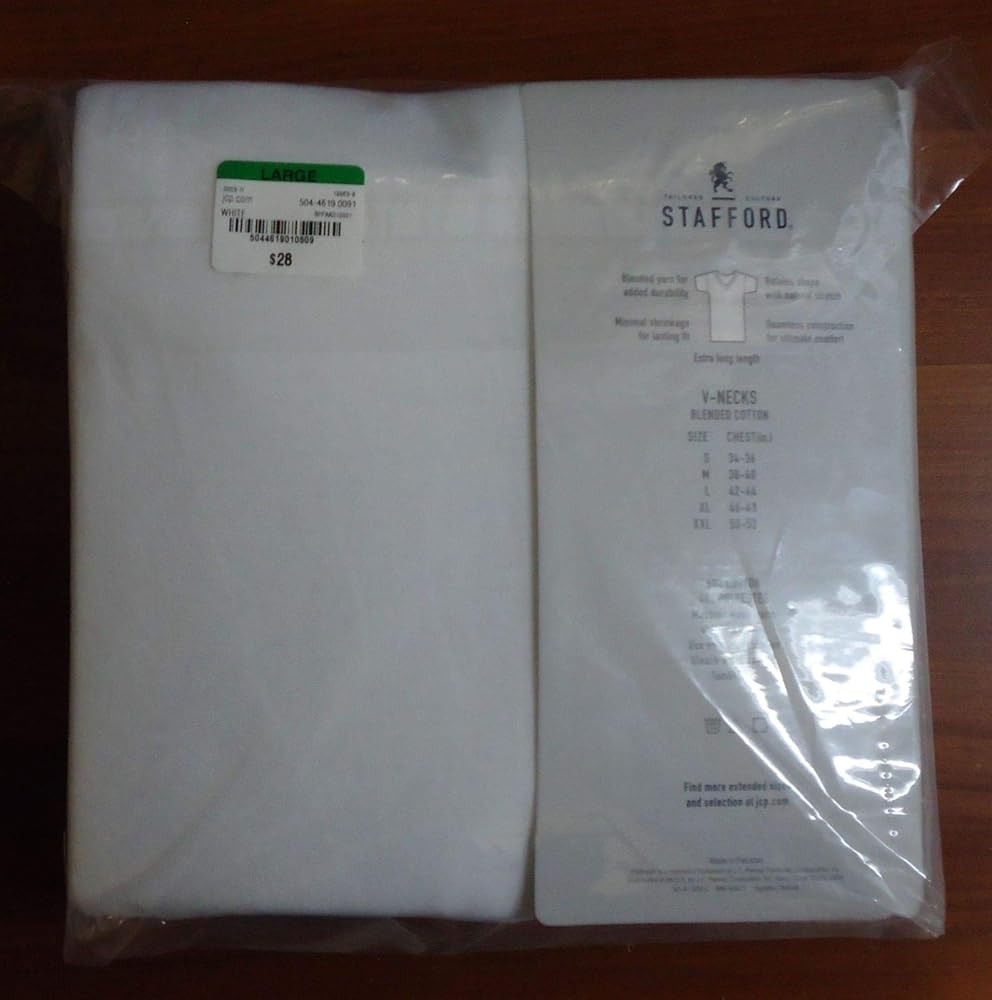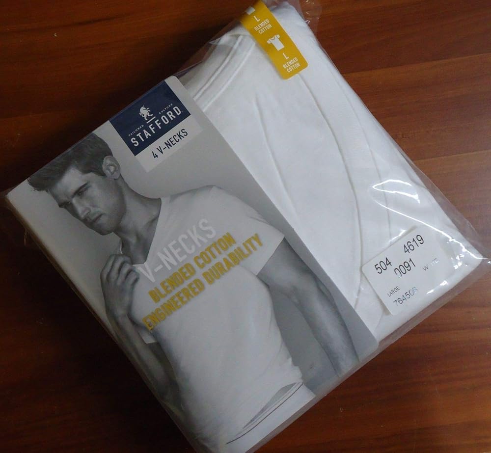 مجموعة من 4 قمصان رجالي من القطن المخلوط برقبة على شكل حرف V من ستافورد. هذا التي شيرت الرجالي المصنوع من القطن المخلوط من ستافورد بدون علامات هو الأفضل في العناية السهلة. حزمة من 4 تي شيرتات برقبة على شكل حرف V. خالية من العلامات. راحة طوال اليوم. أكمام قصيرة. قطن بنسبة 60٪ / بولستر بنسبة 40. آلة قابل للغسل. مستورد. اللون الابيض.