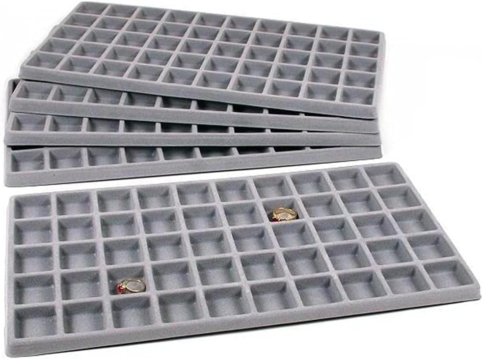 • 5 عبوات من 50 فتحة باللون الرمادي منظم للمجوهرات من البلاستيك المغلف بعرض كامل الحجم