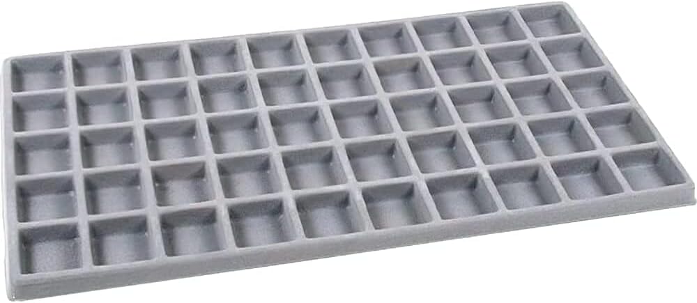 هذه مجموعة جديدة من 5 قطع بحجم قياسي إدراج 50 حجرة درج رمادي اللون رائعة لحفظ المكونات أو القطع الصغيرة والمجوهرات الخرز، والأحجار الكريمة، والخواتم والأقراط والعملات المعدنية وقطع الساعات والمجوهرات منظمة. هذه الصواني مثالية للاستخدام مع بطاقات القرط، كل حجرة يبلغ مقاسها تقريبًا 1 1/8 بوصة × 1 1/4 بوصة (28 × 31 مم) كل قطعة تقريبًا 14 مم. /20.3 × 7 5/8 × 1/2 بوصة (14.1 × 7.5 × 12 مم).