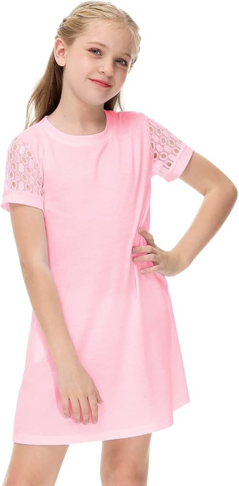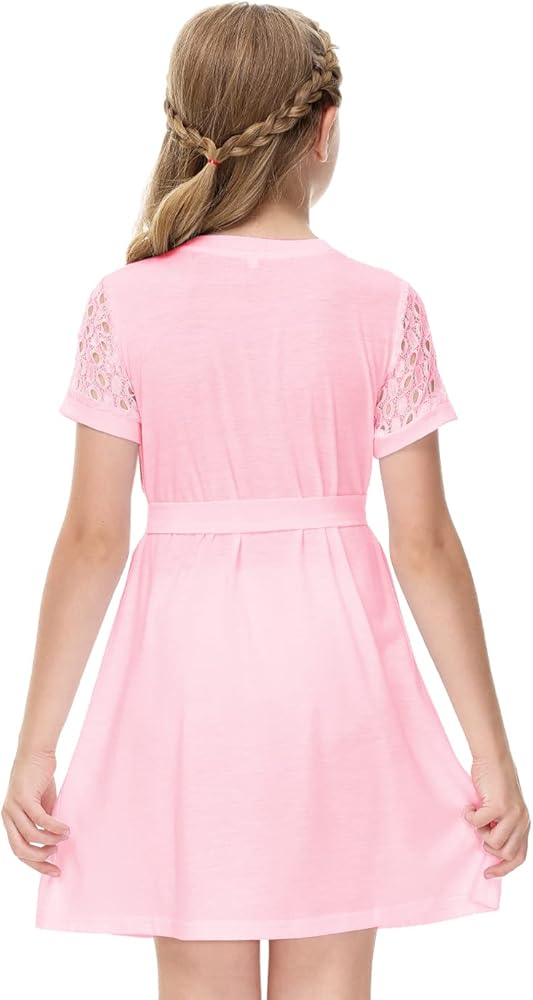 فستان تي شيرت بحزام للفتيات: دانتيل بأكمام طويلة، حزام خصر قابل للفصل، تصميم بلون موحد، أضف لمسة ممتعة إلى ملابسك اليومية في الخريف.