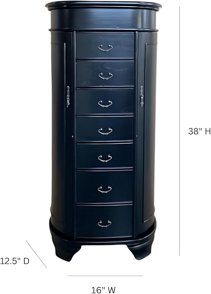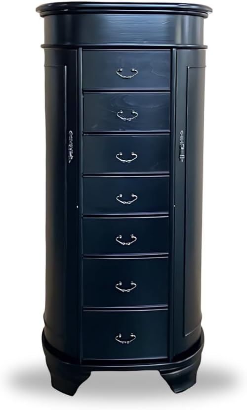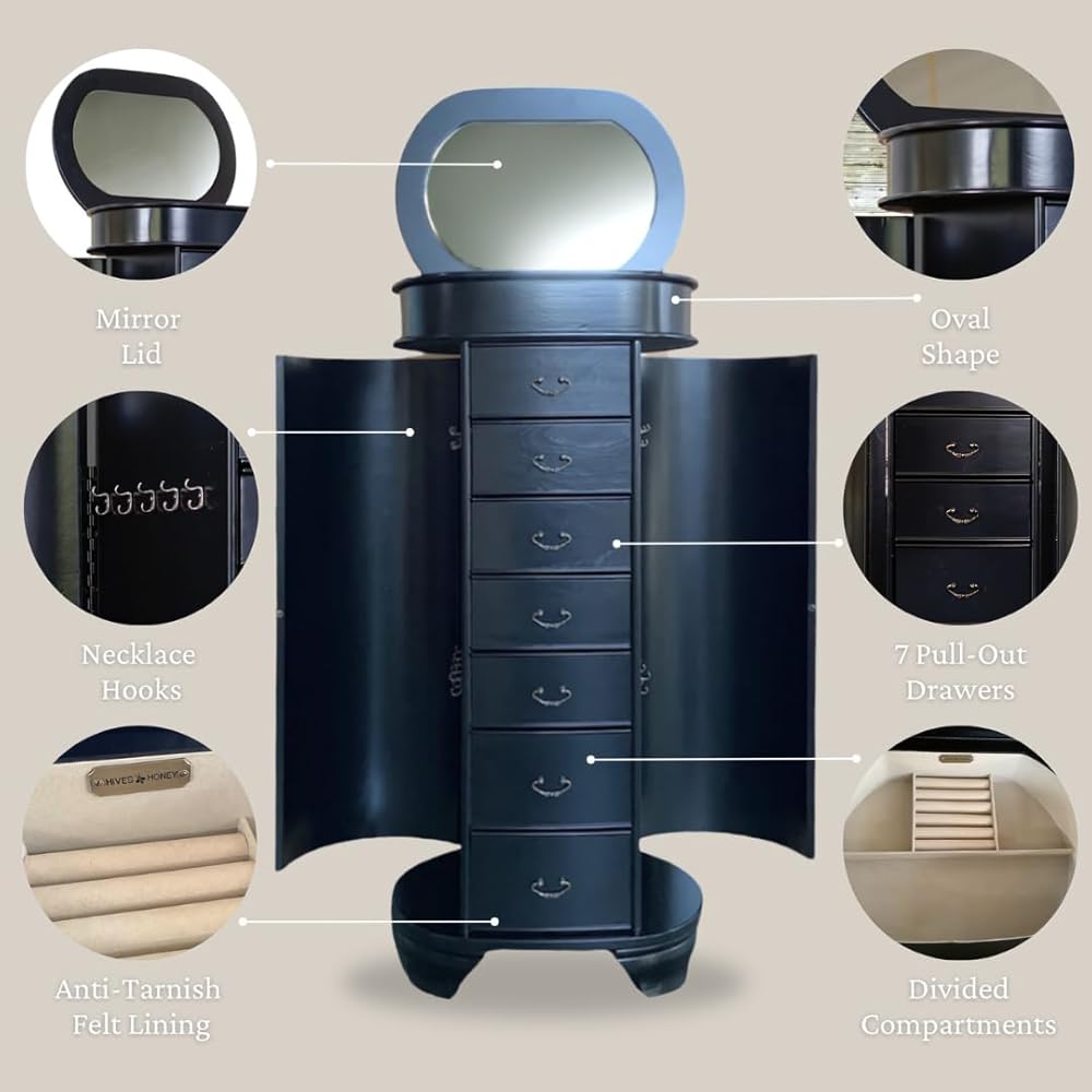 خزانة مجوهرات ديليلا البيضاوية القائمة من الفير هوم هي قطعة فريدة من نوعها! صُممت هذه الخزانة الأنيقة مع وضع التقاليد في الاعتبار، كما أنها تتميز بلمسة عصرية مع حواف دائرية. ستخزن خزانة المجوهرات من ديليلا مجموعة مجوهراتك بأكملها بسهولة؛ جميع الأدراج مبطنة بلباد مضاد للبهتان. متوفر بثلاثة ألوان: شيري وأسود وتركواز.