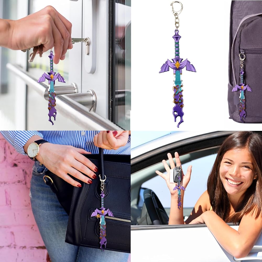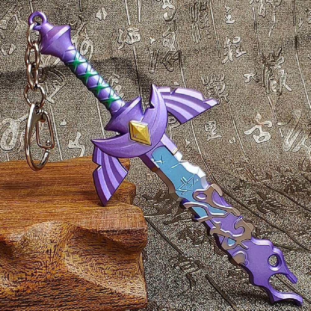 ميت كيوت سلسلة مفاتيح بتصميم سيف ماستر، اكسسوارات سلسلة مفاتيح رائعة للرجال والنساء بتصميم سيف اسطورة زيلدا، زينة عيد الميلاد، اكسسوارات تنكرية بتصميم مملكة الدموع، ارجواني، 13 سم, بنفسجي