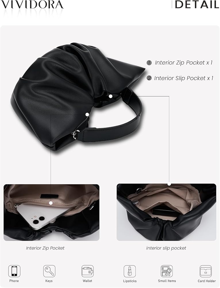 ✅تعدد الاستخدامات: ارفع أناقتك مع هذه الحقيبة الأنيقة والمرنة على شكل هلال المصممة للتكيف مع احتياجاتك. تأتي مع ثلاثة أحزمة كتف قابلة للتعديل بأطوال مختلفة، مما يسمح لك بتحويلها بسهولة إلى حقيبة يد أو حقيبة كتف أو حقيبة كروس لتناسب أي مناسبة. تعد هذه المحفظة السحابية مزيجًا مثاليًا من الموضة والقدرة على التكيف، مما يضمن لك إمكانية حملها بطريقتك كل يوم.