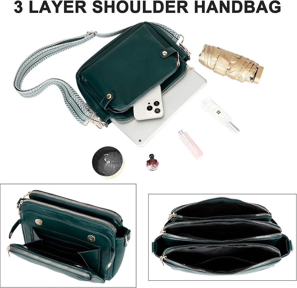 جيوب متعددة: حقيبة كتف من 3 طبقات تحتوي على 9 فتحات للبطاقات وموضع واحد للفاتورة، وجيب داخلي بسحاب وجيب واحد مفتوح. تحتوي حقائب الجسم هذه على الكثير من الجيوب لتخزين جميع أغراضك اليومية، مثل iPhone، والمفاتيح، وسماعات الرأس، والنظارات الشمسية، والتذاكر وأحمر الشفاه والأشياء الصغيرة الشخصية
