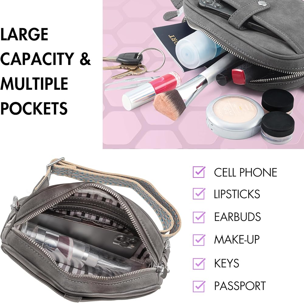 السعة: على الرغم من صغر حجم هذه الحقيبة التي تمر بالجسم، إلا أنها تتمتع بمساحة واسعة مع جيبين خارجيين يسهل الوصول إليهما وجيب داخلي واسع بسحاب للحفاظ على الأشياء الثمينة آمنة.