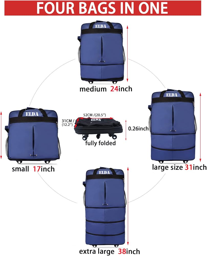 【الأبعاد】: هناك ثلاث طبقات من الأمتعة القابلة للتوسيع، الحجم الأساسي للأمتعة هو: 17 بوصة (ارتفاع) × 20 بوصة (طول) × 12 بوصة (عرض)؛ أول سحاب مفتوح: 24 بوصة (ارتفاع) × 20 بوصة بوصة (طول) × 12 بوصة (عرض)؛ فتح السحاب الثاني: 31 بوصة (ارتفاع) × 20 بوصة (طول) × 12 بوصة (عرض)؛ جميع السحابات المفتوحة: 38 بوصة (ارتفاع) × 20 بوصة (طول) × 12 بوصة في (عرض). يمكن طي الحقيبة القابلة للطي إلى حقيبة صغيرة الحجم مقاس 20 × 12 × 3 بوصة سهلة التخزين عندما لا تكون قيد الاستخدام. يبلغ وزن الأمتعة 5.76 رطلاً.