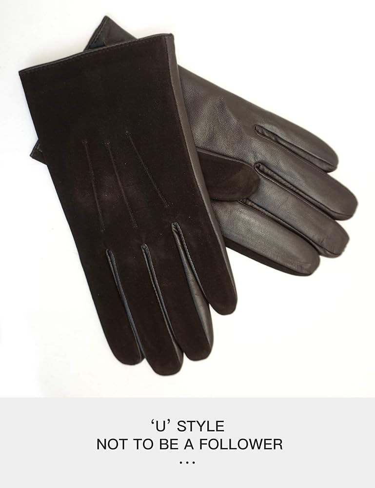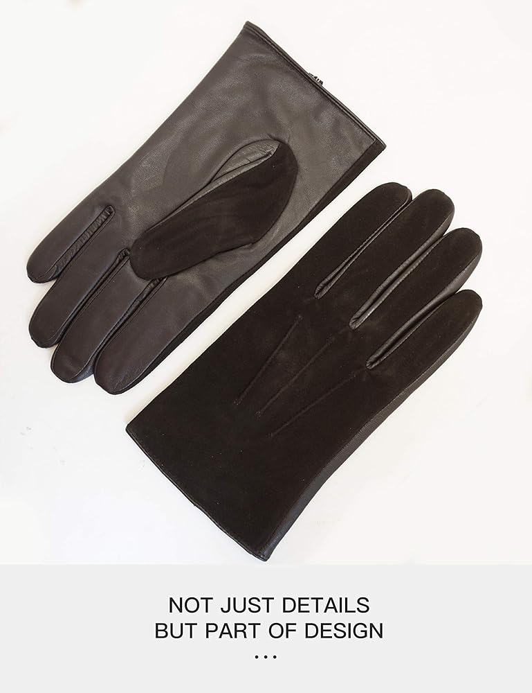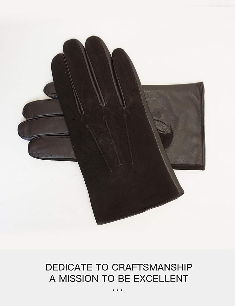 • 100% جلد من جلد الغنم - مصنوع من جلد الغنم الأصلي عالي الجودة مع نعومة الملمس، والمرونة، والقوة والراحة الدائمة. القفازات الجلدية تناسب أصابعك بشكل جيد وستكون ضروريات الطقس البارد الأنيقة.