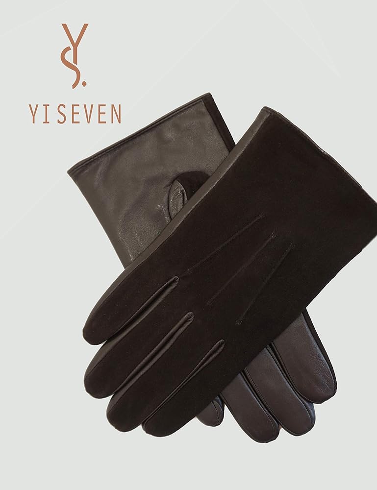 قفازات شتوية من جلد الخراف من ييسيفين للرجال من الجلد السويدي بشاشة لمس مبطنة بالفرو, أسود