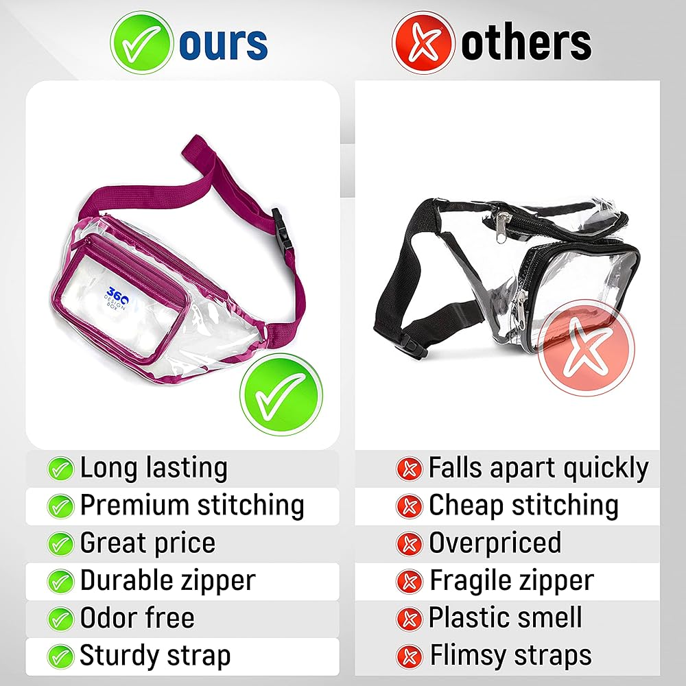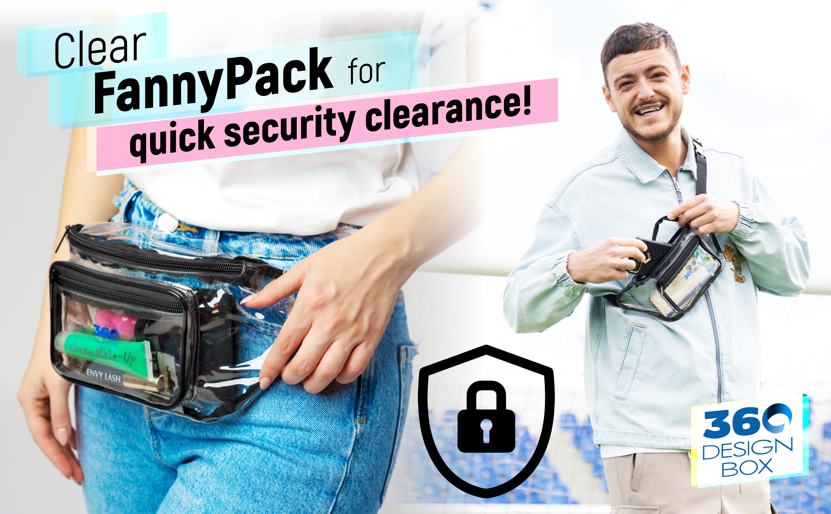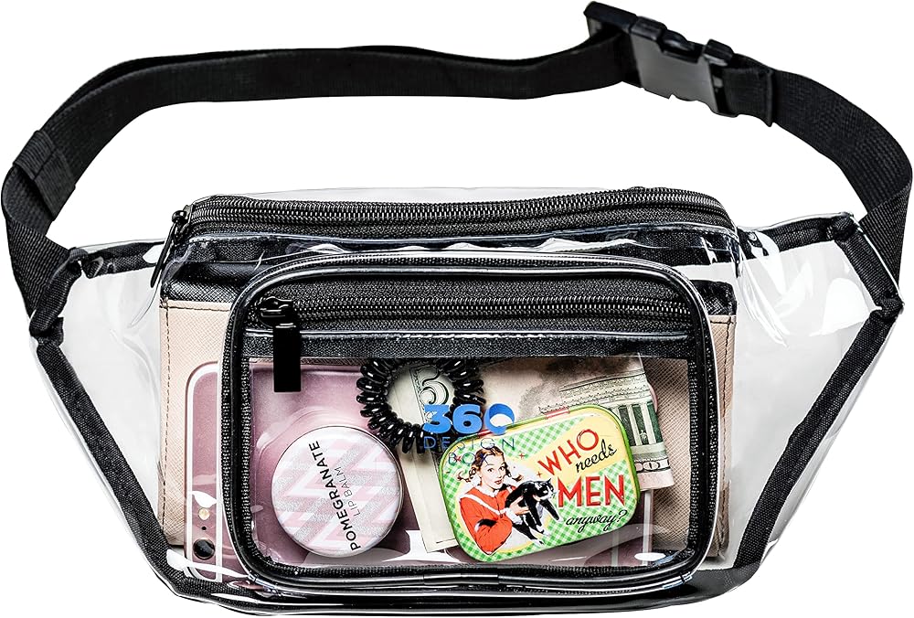 👌 مقاومة للماء ومتينة: مصنوعة من مادة شفافة عالية الجودة، تحافظ حقيبة الفاني الشفافة المقاومة للماء على مقتنياتك آمنة وجافة، بغض النظر عن الطقس.