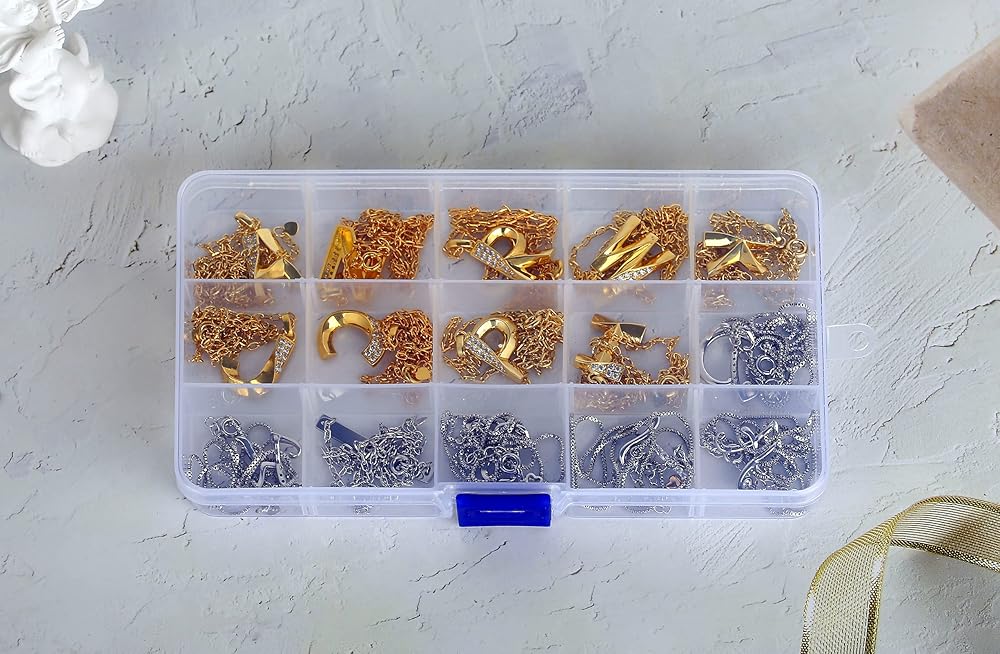 التطبيق: المنظم مثالي لتخزين المعلقات أو الخرز أو الأقراط أو القلائد أو الخواتم أو غيرها من الملحقات الصغيرة. يمكنه أيضًا تخزين خطافات الصيد والأجزاء الإلكترونية الصغيرة والأظافر والصواميل والمسامير.