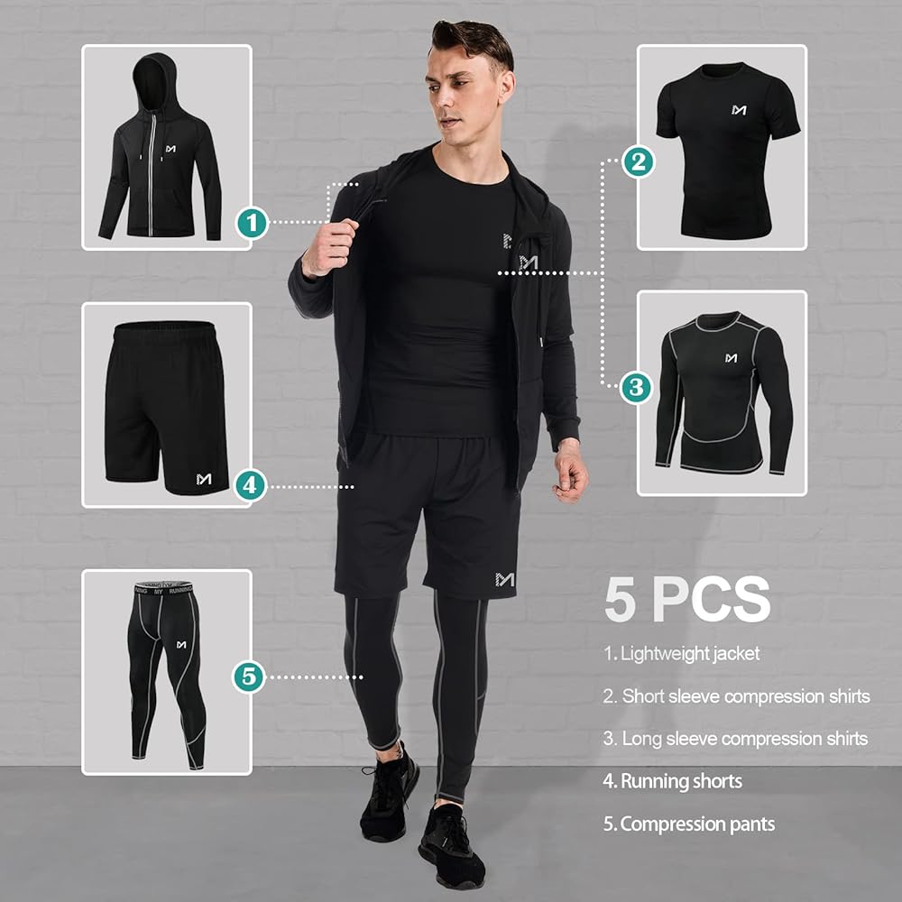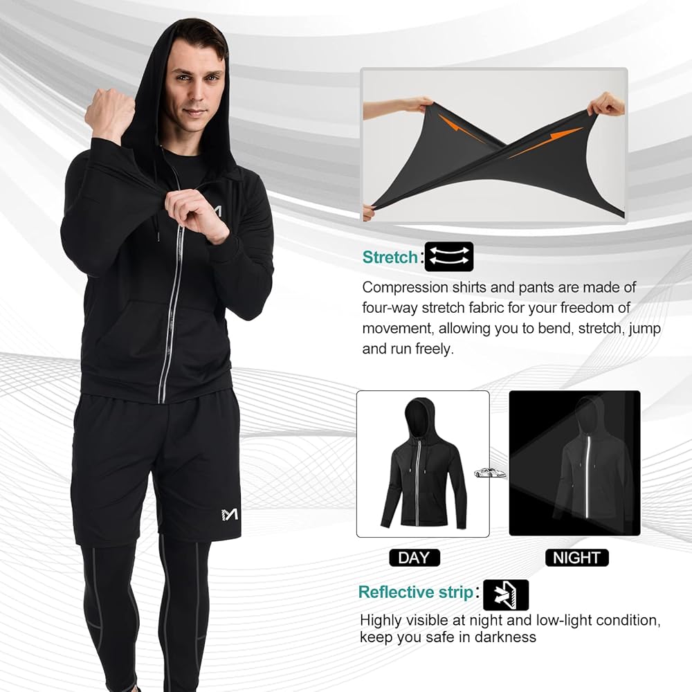 [تمتص العرق على الفور] تم تصميم مجموعات الضغط للرجال من 92% بوليستر و8% ألياف لدنة، وهي ناعمة جدًا ومسامية وسريعة الجفاف. ملابس التمرين ستبقيك بعيدًا عن الشعور بالرطوبة والرائحة الكريهة، وستظل منتعشًا ومرتاحًا طوال اليوم