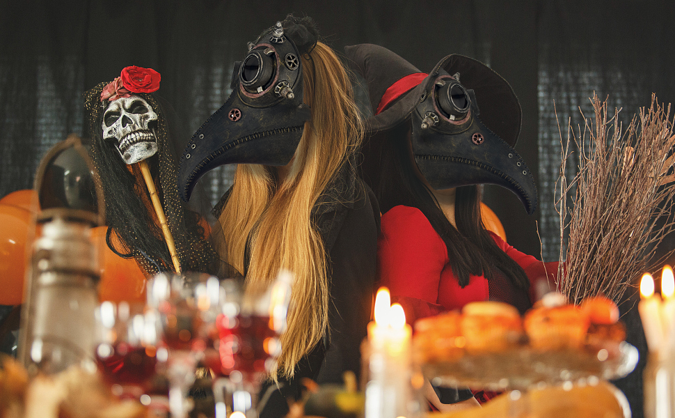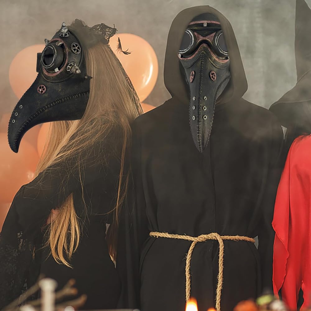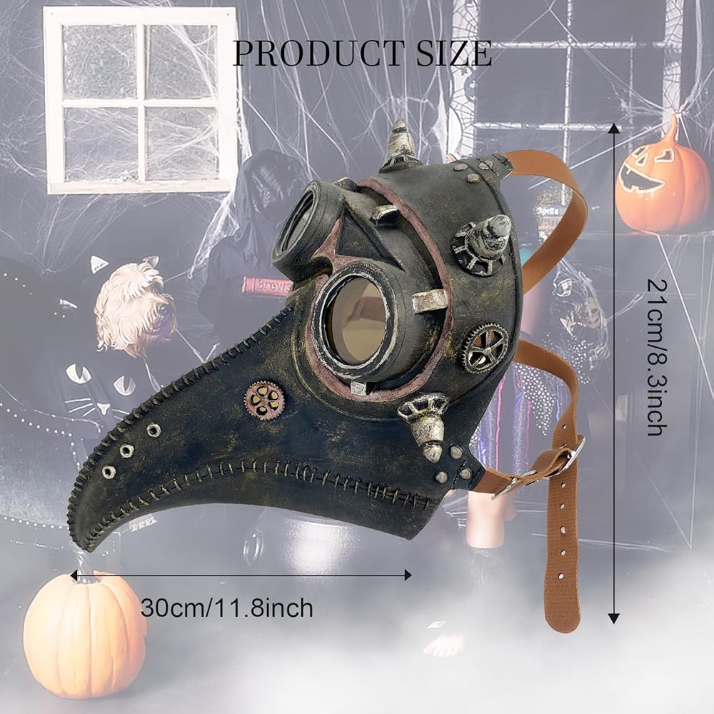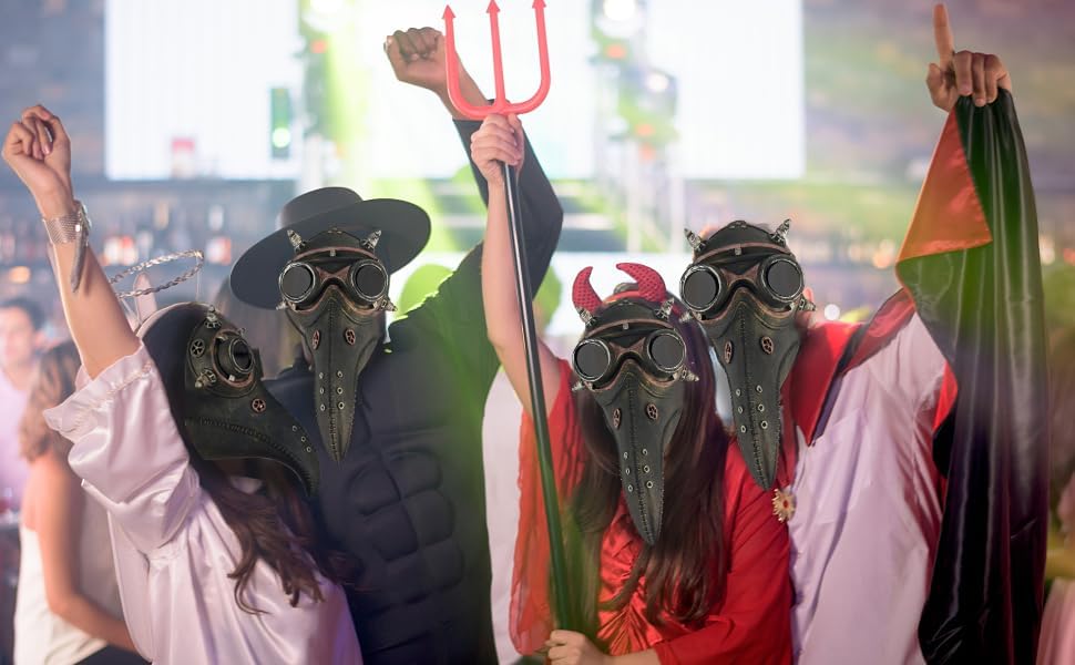 【مريح في الارتداء】 قناع طبيب الطاعون، ناعم ومريح عند اللمس. تم تصميم حزام رأس القناع بشريط مطاطي، لذلك يمكن تعديل الحجم والموضع بسهولة. مقاس واحد يناسب معظم البالغين والمراهقين. يمكنك ضبط حجم محيط رأسك ليناسب بشكل مريح.