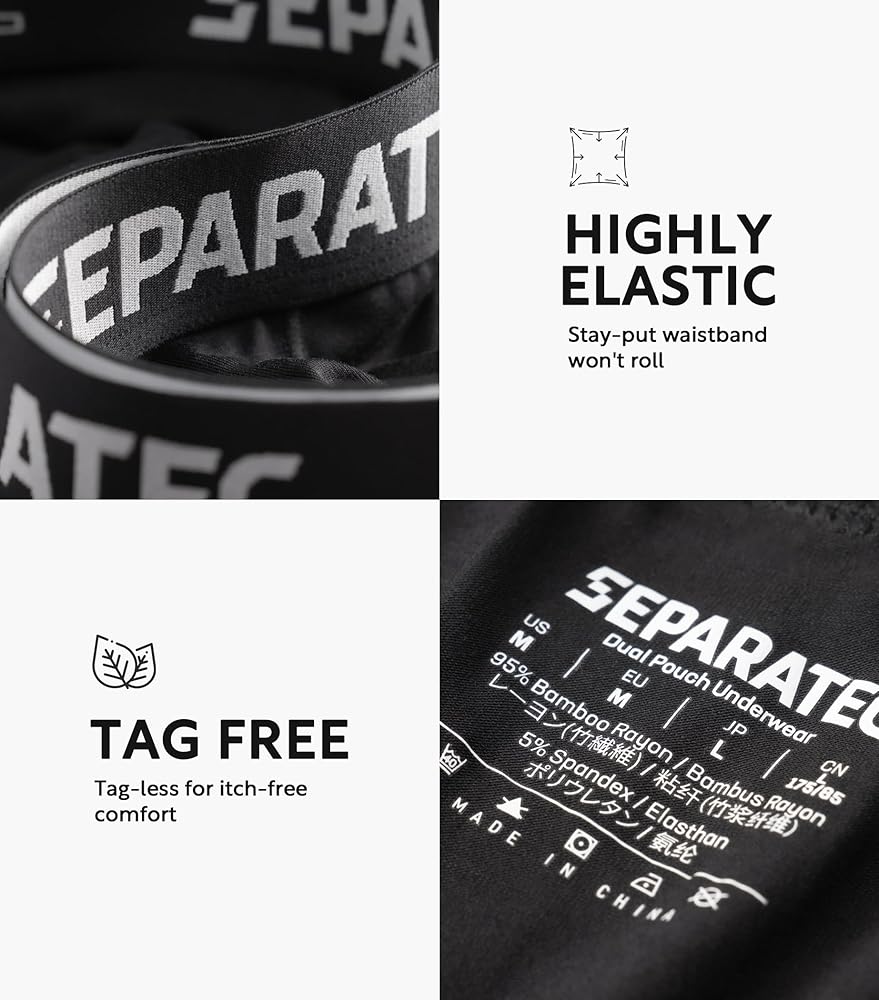 ملابس داخلية منفصلة للرجال: سراويل داخلية بوكسر جديدة تمامًا تتميز بنسيج رايون الخيزران عالي الجودة، مناسبة للارتداء اليومي وأسلوب الحياة في الهواء الطلق. يسهل العناية بها للغاية، ولا يبهت حتى بعد الغسيل المتكرر. هل تبحث عن ملابس داخلية جديدة أو هدية للرجال؟ تحقق من هذه!