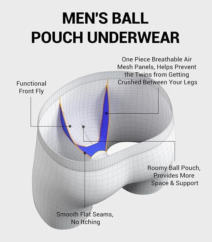 كرة داعمة للملابس الداخلية: توفر مساحة واسعة للغصين والتوت، كما أن الألواح الشبكية المسامية تبقيها منظمة جيدًا وبعيدًا عن الفخذين، وتساعد على منع الاحتكاك وتوفر الراحة طوال اليوم. ▲ملاحظة: هذه السراويل الداخلية الجديدة للرجال تختلف عن الحقيبة المزدوجة الحاصلة على براءة اختراع. يرجى الاطلاع على الصور وقراءة الوصف الخاص بنا لمزيد من التفاصيل قبل الطلب.