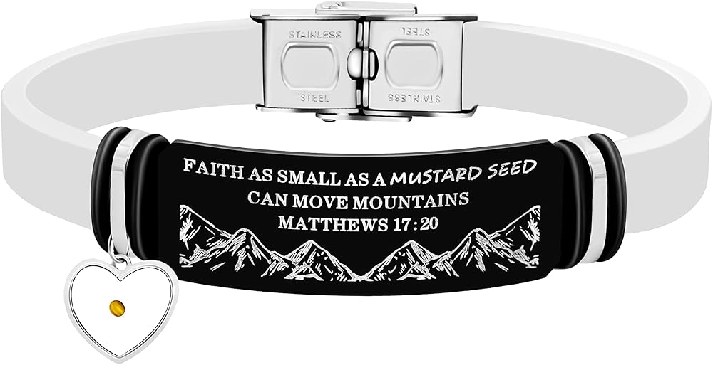 • ♥ الطراز: سوار من السيليكون للرجال والنساء والمراهقين، نقش الإيمان صغير مثل بذور خردلي يمكن أن تحرك الجبال ماثوس 17:20، بسيطة ولكنها ملهمة. إنه للارتداء اليومي، إذا كنت تعتقد بشدة أنه "مع الله، لا شيء مستحيل"، يمكنك فعل أي شيء لتحقيق أحلامك.