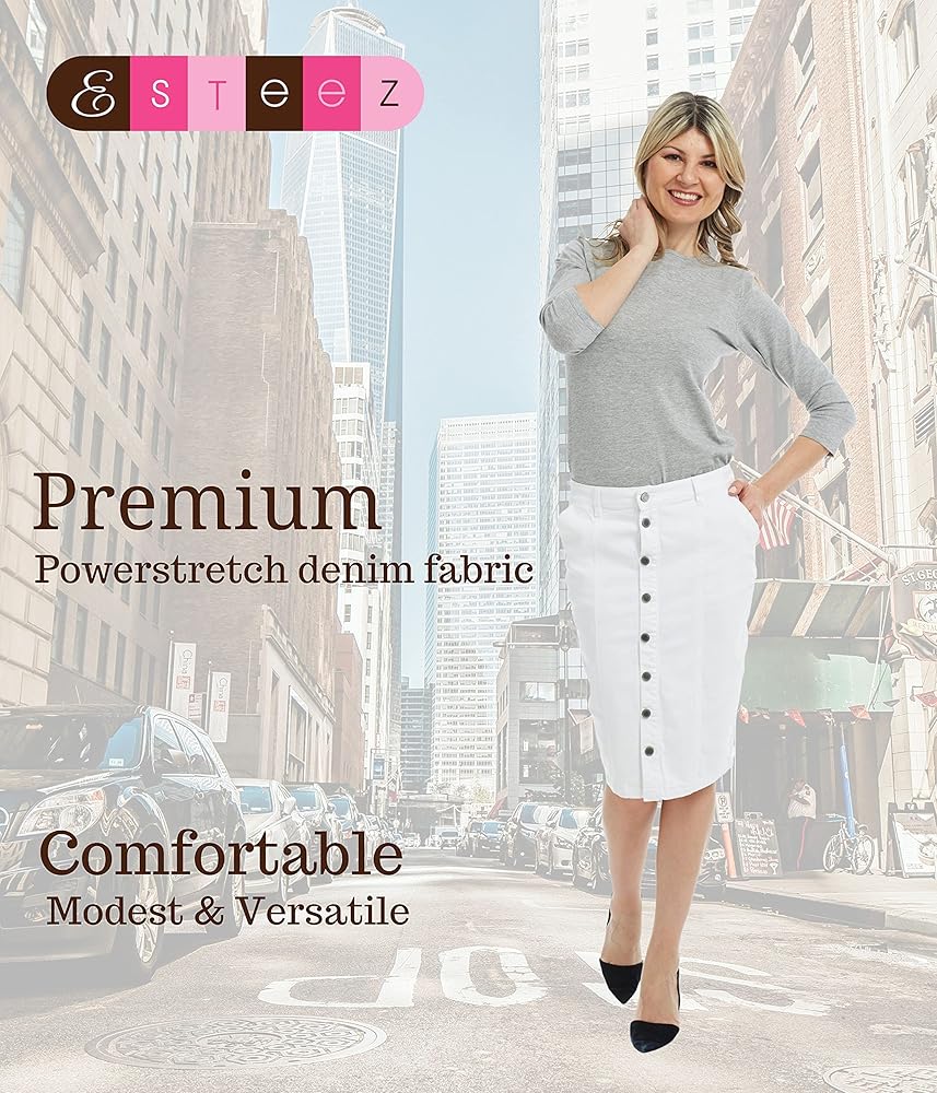 - قماش دينم مطاطي، بدون جيوب خلفية، بدون فتحة خلفية، نسيج ناعم وقابل للتمدد، إغلاق بأزرار سفلية، جيوب أمامية عملية