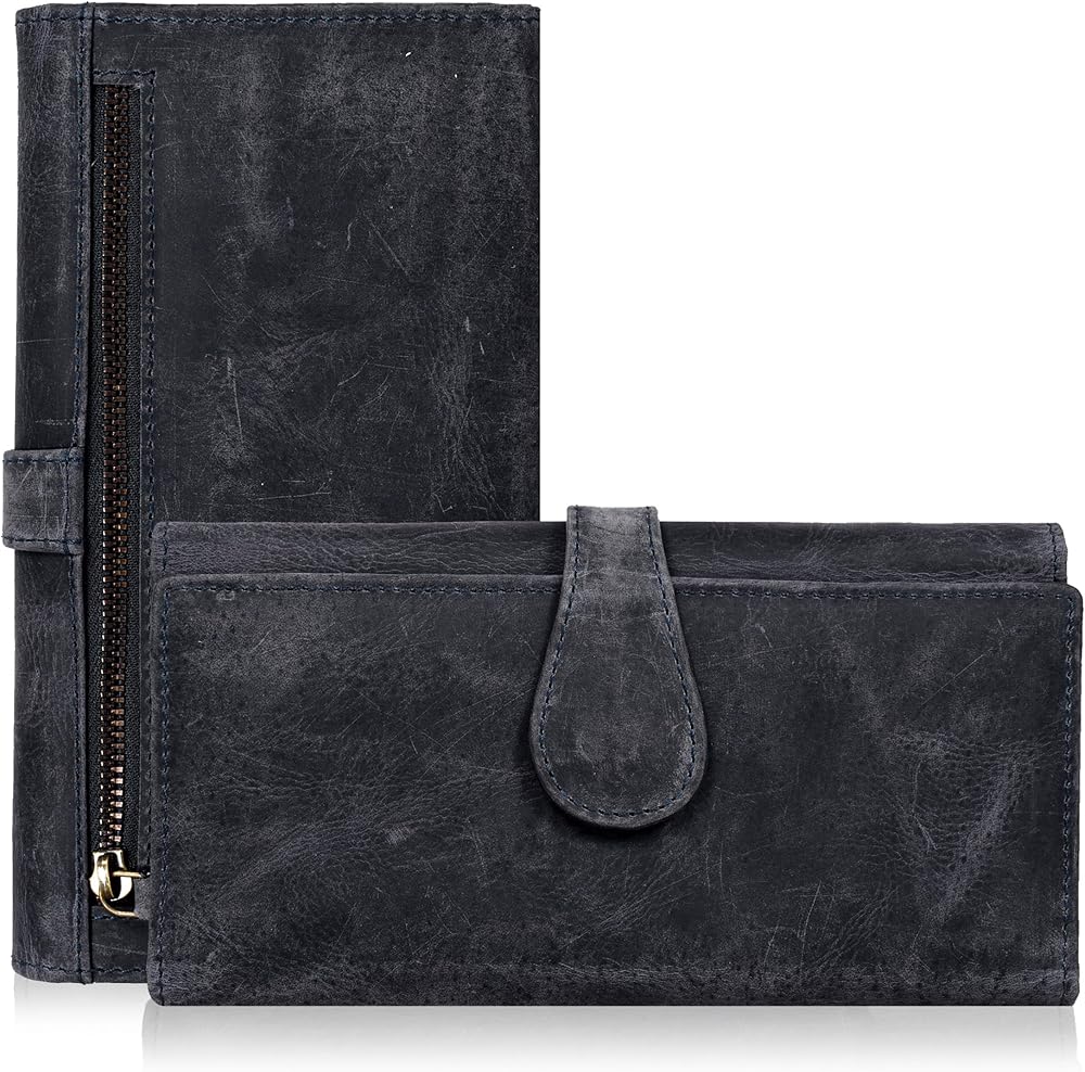 ESTALON محفظة جلدية طويلة ثنائية الطي للنساء | حجب RFID | 11 فتحة لتنظيم البطاقات | 3 معرف ويندوز | محفظة سفر نسائية عصرية | محفظة كلاتش للسيدات | هدايا لها | هدية عيد الأم | أزرق