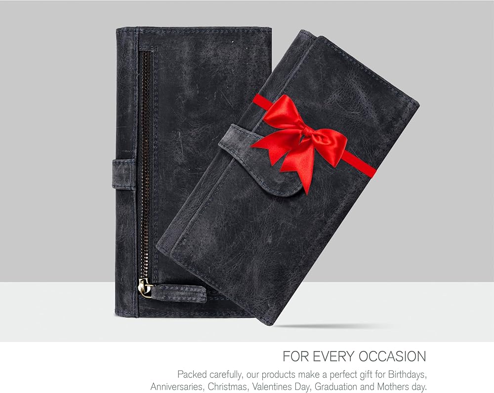 • المواد: مصنوعة من جلد أصلي 100%، محفظتنا الجلدية للسيدات أنيقة وتدوم طويلاً. هذه المحفظة الجلدية مصنوعة يدويًا على يد مصممين محترفين، وهي مصممة للنساء لحمل النقود والعملات المعدنية وغيرها من الملحقات في مكان واحد.