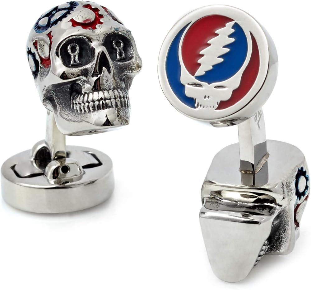 أزرار أكمام بتصميم جمجمة الموتى من تاتوسيان، مطلي بالروديوم الفضي