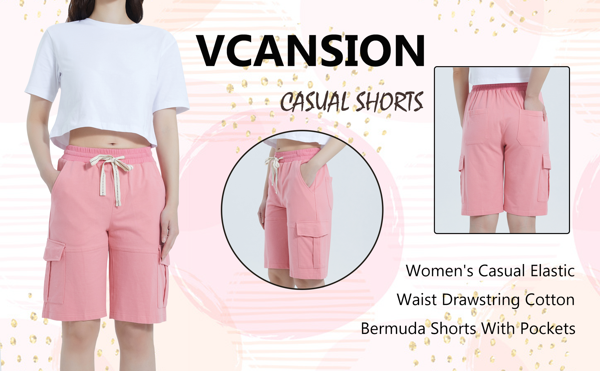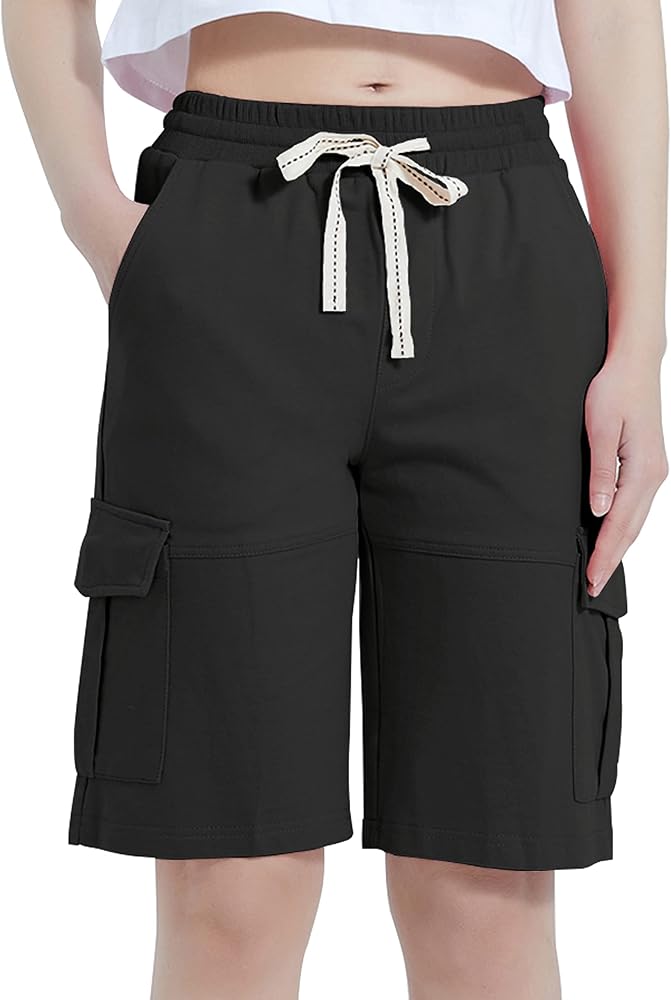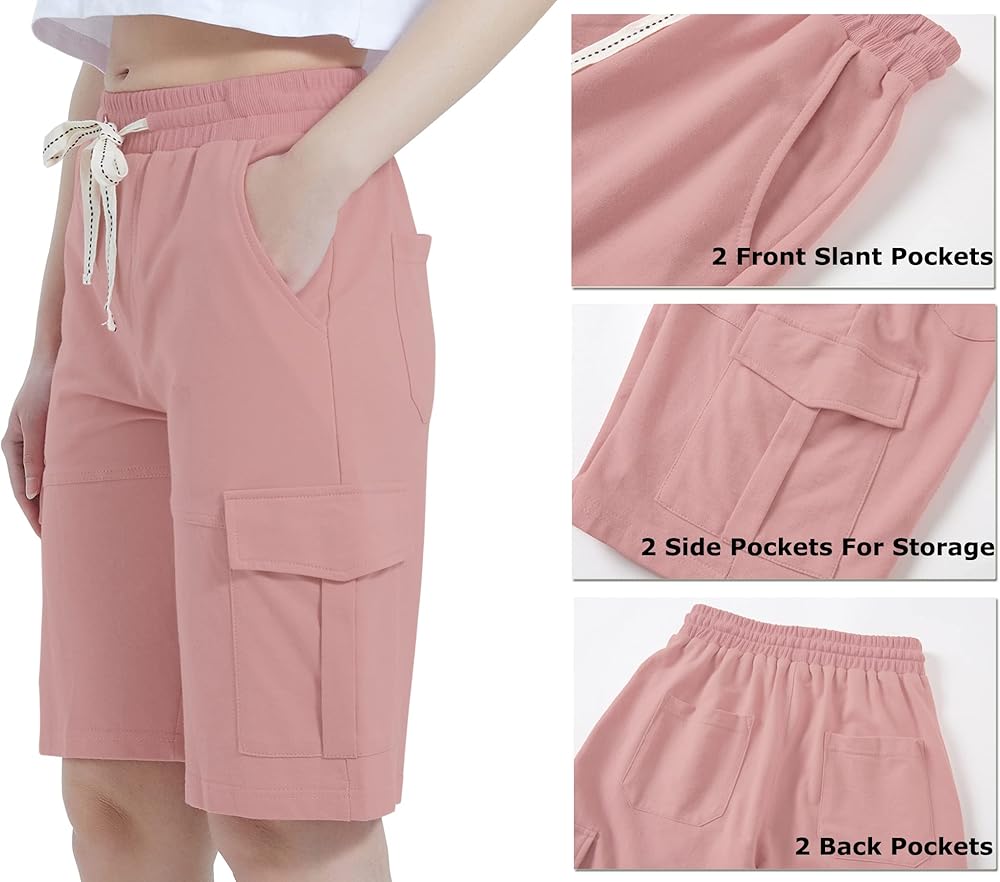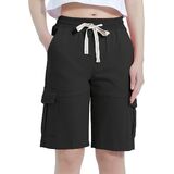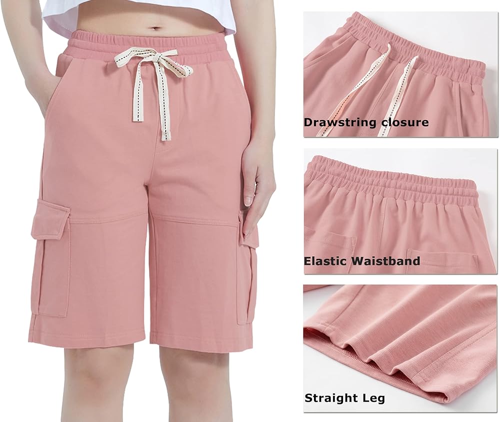 شورت برمودا نسائي صيفي كاجوال من Vcansion بخصر مطاطي بطول الركبة مع رباط