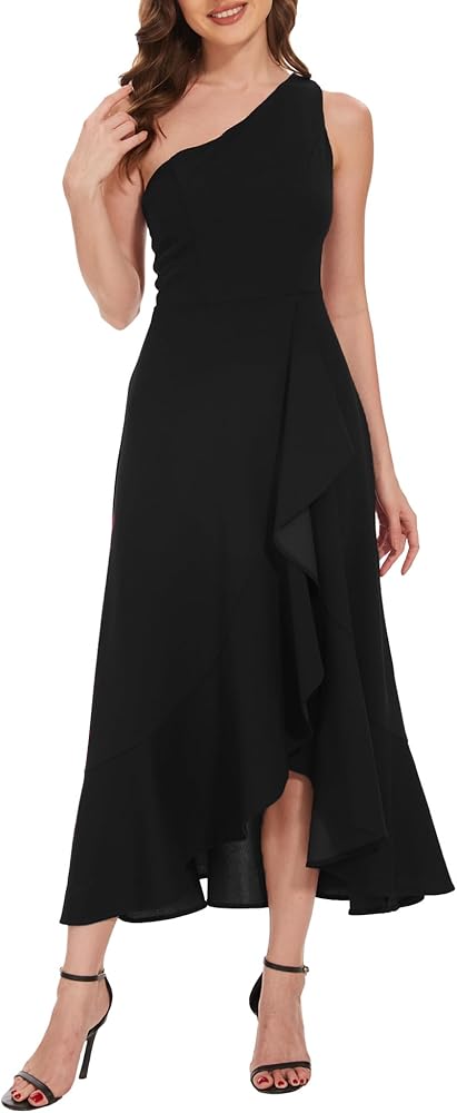 Dressystar فستان نسائي صيفي 2023 لحفلات الزفاف والكوكتيل بكتف واحد للحفلات الراقصة بدون أكمام وفتحة مفتوحة للحفلات الرسمية