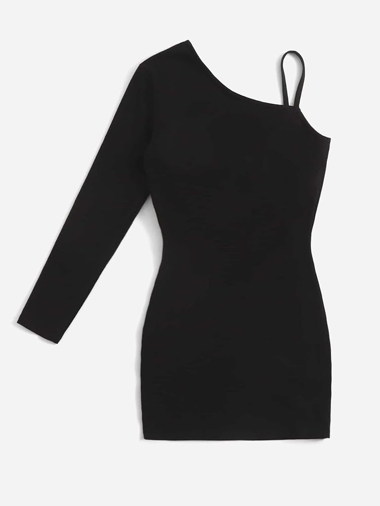 - السمات: رقبة غير متماثلة، كم طويل، حزام سباغيتي، قصير، عادي، مقاس نحيف، فستان ضيق