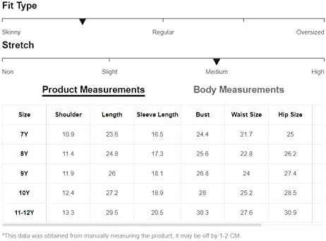جدول المقاسات: 7 سنوات: الكتف: 10.9 بوصة، الطول: 23.6 بوصة، طول الكم: 16.5 بوصة، الصدر: 24.4 بوصة، مقاس الخصر: 21.7 بوصة، مقاس الورك: 25 بوصة، أساور الأكمام: 5.7 بوصة، طول الأشرطة: 8.1 بوصة/ 8 سنوات: الكتف: 11.4 بوصة، الطول: 24.8 بوصة، طول الكم: 17.3 بوصة، الصدر: 25.6 بوصة، مقاس الخصر: 22.8 بوصة، مقاس الأرداف: 26.2 بوصة، الأساور: 5.9 بوصة، طول الأشرطة: 8.5 بوصة/ 9 سنوات: الكتف: 11.9 بوصة، الطول: 26 بوصة، طول الكم: 18.1 بوصة، الصدر: 26.8 بوصة، مقاس الخصر: 24 بوصة، مقاس الورك: 27.4 بوصة، أساور الأكمام: 6.1 بوصة، طول الأشرطة: 8.9 بوصة/ 10 سنوات: الكتف: 12.4 بوصة "، الطول: 27.2"، طول الكم: 18.9"، الصدر: 28"، مقاس الخصر: 25.2"، مقاس الأرداف: 28.5"، أساور الأكمام: 6.2"، طول الأشرطة: 9.3 بوصة/ 11-12 سنة: الكتف: 13.3 بوصة ، الطول: 29.5 بوصة، طول الكم: 20.5 بوصة، الصدر: 30.3 بوصة، مقاس الخصر: 27.6 بوصة، مقاس الأرداف: 30.9 بوصة، أساور الأكمام: 6.5 بوصة، طول الأشرطة: 9.6 بوصة