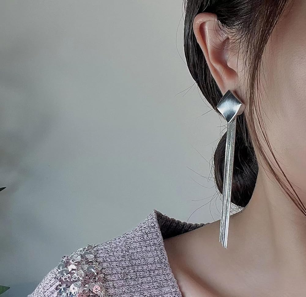 • أقراط شرابة هندسية معدنية طويلة بسيطة مناسبة للارتداء اليومي. لديهم شعور يتمايل ومشرق. تتميز الأقراط بملمس منسدل ومريحة في الارتداء. كما أن الوخز بالإبر في الأذن لا يسبب الحساسية هو أيضًا خيار مناسب للأذنين الحساسة