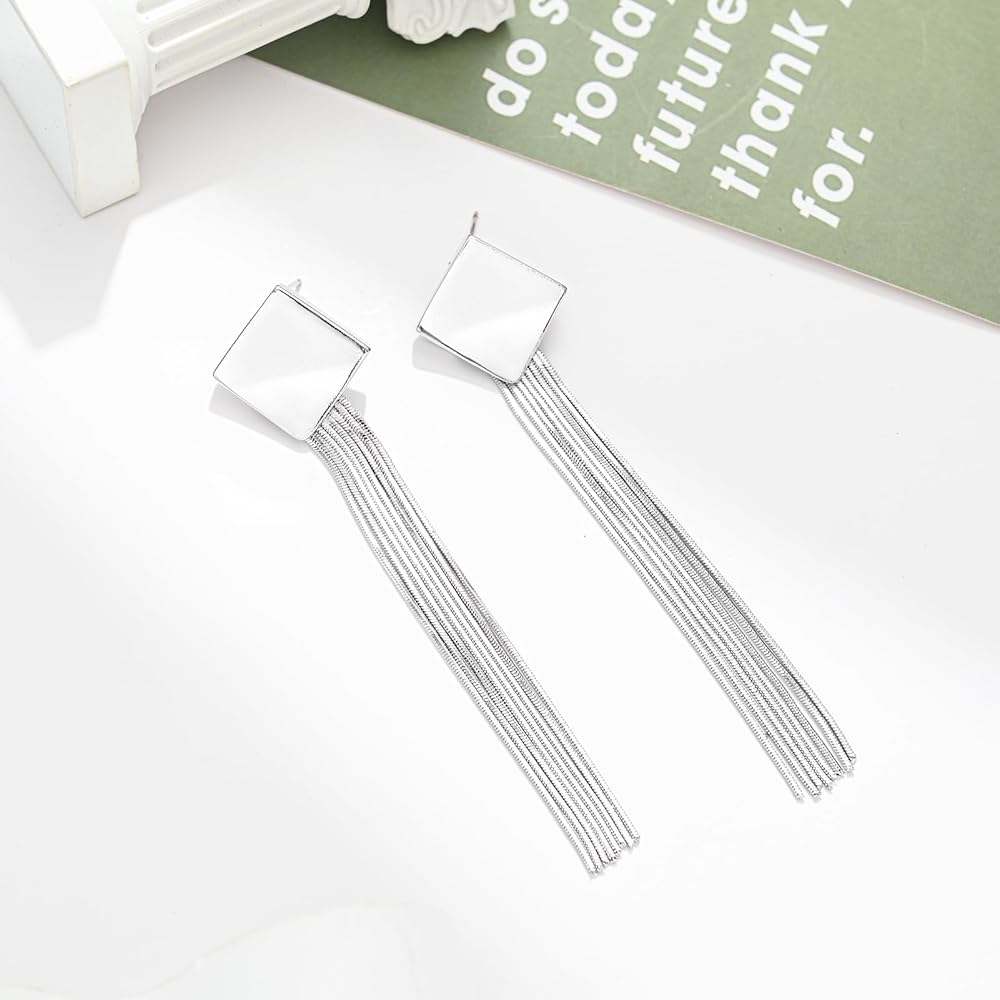 أقراط Veerady النسائية الطويلة المتدلية والشرابة لحفلات الزفاف ووصيفات العروس للفتيات والحفلات الراقصة سلسلة معدنية مجوهرات
