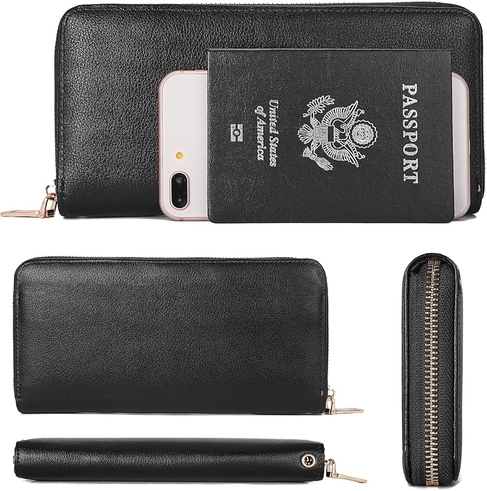 محفظة نسائية من جلد البولي يوريثان بسحاب حول RFID ومحفظة سفر كبيرة