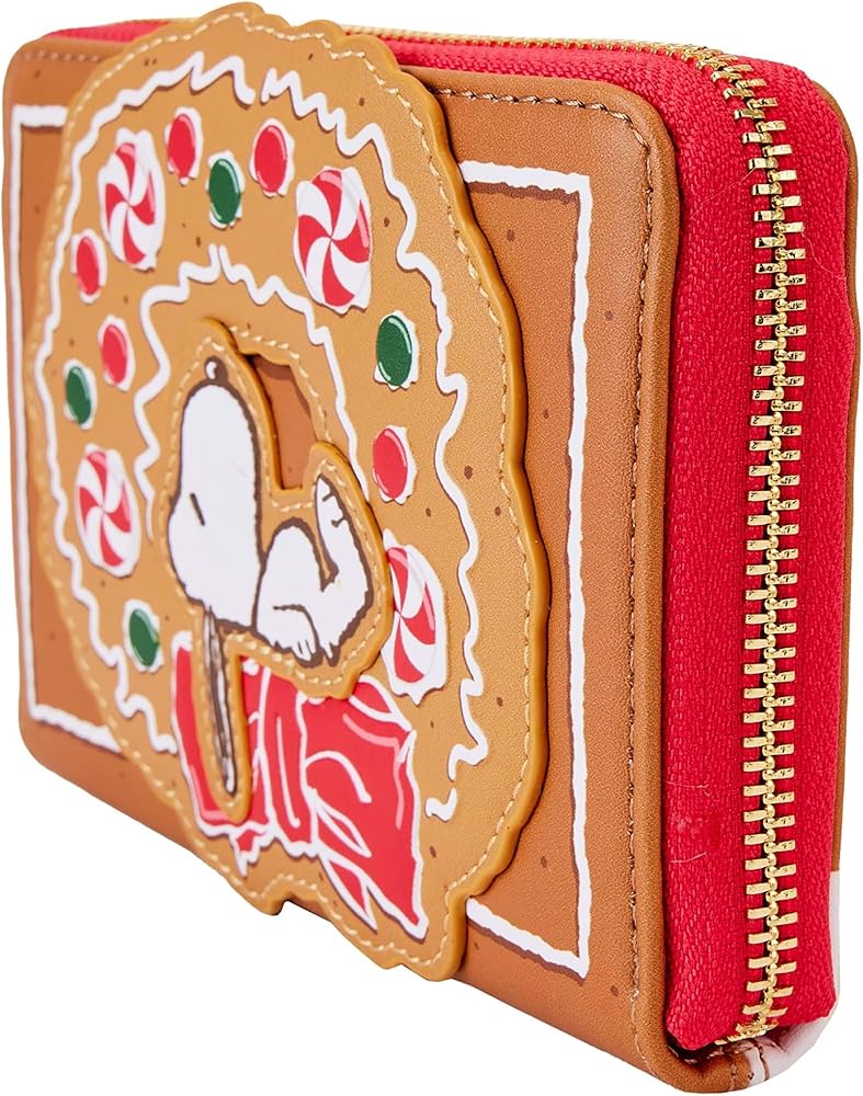 قطعة من الكيك، مع جميع الزركشة! احصل على مظهر مرح واحتفالي بدون عناء مع محفظة لاونج فلاي Peanuts Snoopy Gingerbread Wreath المزودة بسحاب محيط. في المقدمة، يغفو سنوبي في منتصف إكليل مليء بالحلوى يمتد إلى ما وراء إطار المحفظة. على الظهر، يستمتع ببسكويت بينما يجلس بين قطرات اللثة الحمراء والخضراء والثلج الأبيض المثلج. في الداخل، ستجد أربع فتحات لحمل البطاقات وفتحة واحدة شفافة لعرض بطاقة الهوية. يطير وودستوك للحصول على مظهر على حامل بطاقة الهوية الشفاف كشكل مقطوع بالقالب. من المؤكد أن هذه المحفظة ستكون مثالية لجميع نزهات عطلتك.