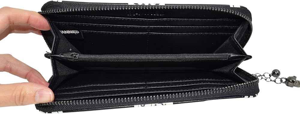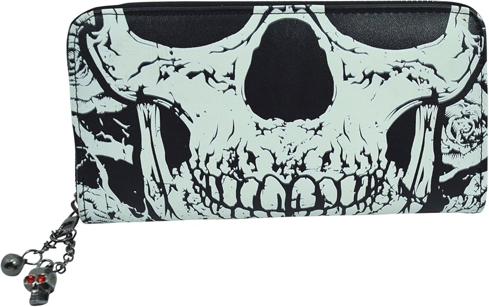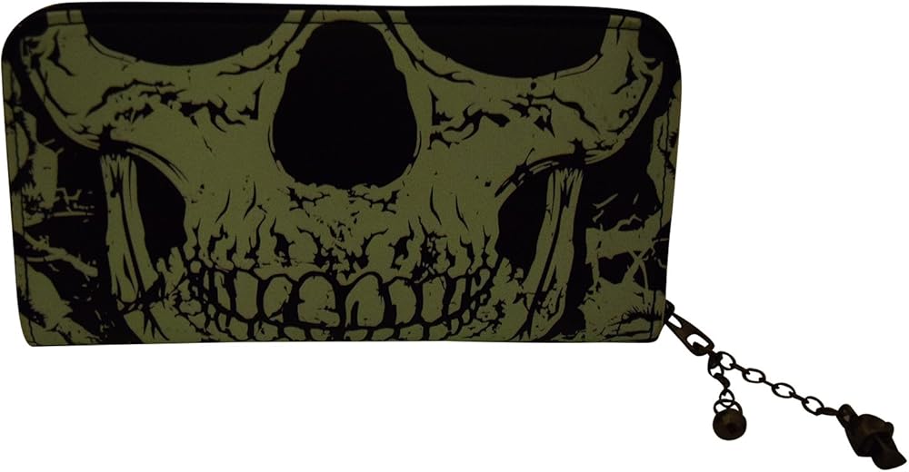 مع اللون الرئيسي للأسود، تحتوي هذه المحفظة المذهلة على وجه جمجمة الموت في الأمام والخلف. وتتوهج في الظلام! المحفظة آمنة بسحاب في كل مكان يتم سحبه بواسطة سحاب جمجمة يضمن عدم سقوط المحتوى الداخلي. بالنسبة للبنك وبطاقات الائتمان، هناك أقسام منفصلة مع أقسام أكبر للملاحظات المصرفية. للحفاظ على الفضفاض، قم بتغيير القسم الداخلي الأوسط. مصنوعة من البولي فينيل كلوريد بنسبة 100%، هذه المحفظة متعددة الاستخدامات ستكون متعة حملها.
