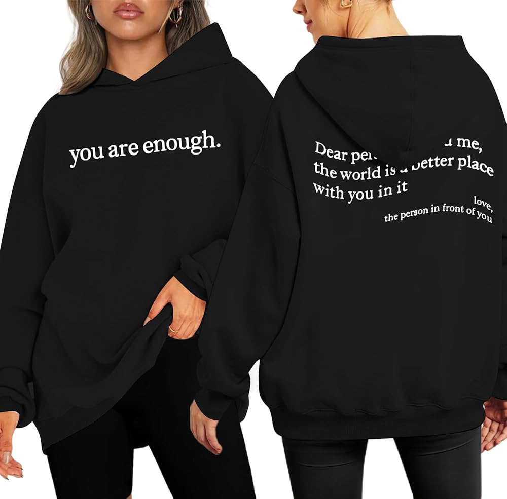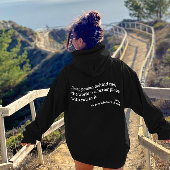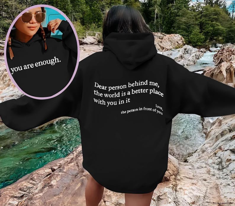 السمات: سترة بغطاء رأس كبيرة الحجم بما فيه الكفاية، سويت شيرت عزيزي الشخص ورائي، قميص للصحة العقلية، قمصان إيجابية، قميص شخصي، سترة مسيحية. انشر الإيجابية في كل مكان تذهب إليه: من خلال ارتداء سويت شيرت "Dear Person Behind Me"، سوف تنشر الإيجابية واللطف أينما ذهبت.