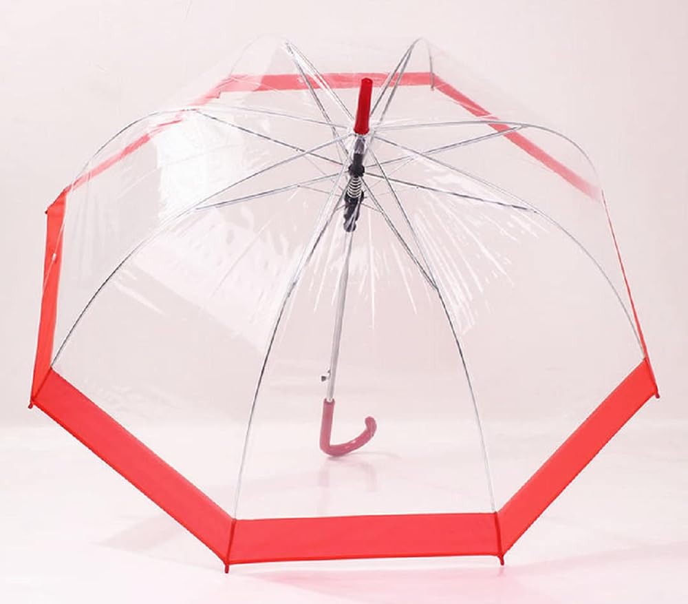 يتيح لك تصميم المظلة ذات الأوراق الشفافة الرؤية من خلال شكل القبة مما يجعلها أكثر أمانًا ضد الوخزات. رؤية واضحة أيضًا أكثر أمانًا للمشي. يمكنك رؤية قطرات المطر تتساقط.. حافة اللون لطيفة جدًا وتتوافق مع الكالوشات الخاصة بها!