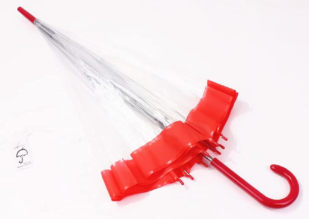 هذه المظلة الشفافة والشفافة هي دعامة مثالية لالتقاط الصور. تتماشى مع الكالوشات الخاصة بها، يمكنها إضافة المزيد من البهجة إلى جلسة التصوير الخاصة بك. أجواء الألوان جميلة جداً. إنه مثالي للخروج أو الزفاف أو التخرج أو المشي اليومي في المدينة.
